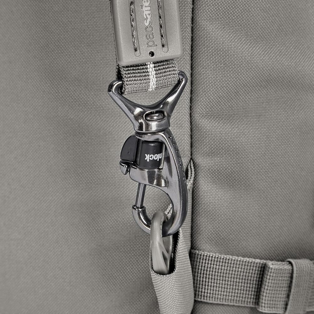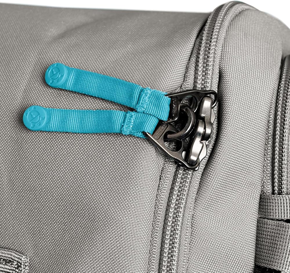 ANTI-THEFT - Cut resistant bag fabric (steel mesh inlay) to prevent theft. Main zip (can be locked w/ padlock, not incl) attachable to hooks. Front Zip can be looped under & through zip tab. With steel wire reinforced shoulder strap & RFID blocking pocket.