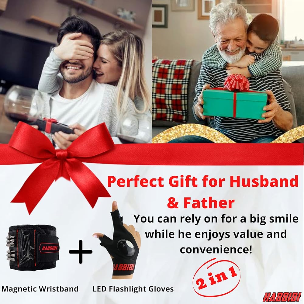 تمنحك قفازات المصباح LED المزيد من الحرية للتركيز على العمل. تضيء القفازات المقاومة للماء والمزودة بمصباح يدوي في كل يد لك وتعمل بشكل مريح. مع عبوة هدايا مخصصة، إنها هدايا مثالية للرجال والنساء والأب/زوج الأم/الأب والأم والرجال والجد والجدة والزوج والصديق والأخ والابن في عيد الأب، وهدايا عيد الشكر، والكريسماس