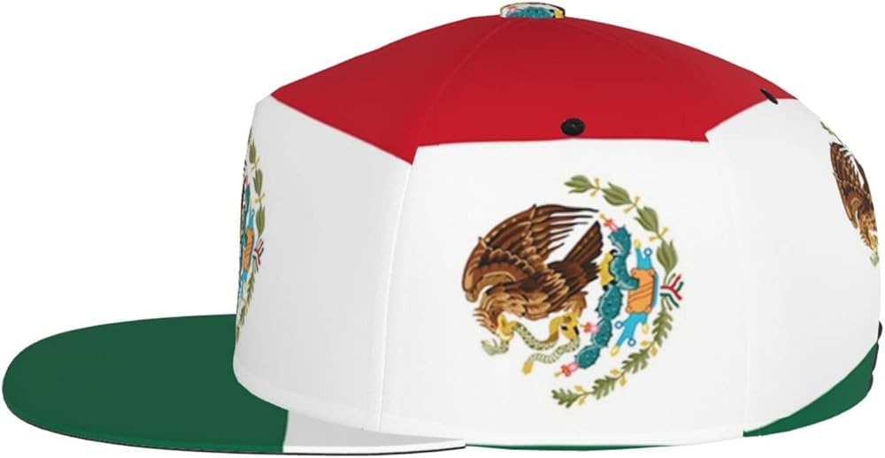 Gift: Mexico Flag Hat is Perfect for Daily Accessory.Perfect As A Gift For Your Lover, Family, Friends And Coworkers.Fashion Mexico Flag Flat Bill All Over Print Snapback Cap all over the hat, makes you more attractive and charming among the crowd.