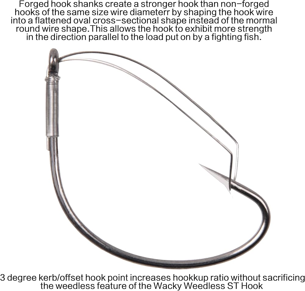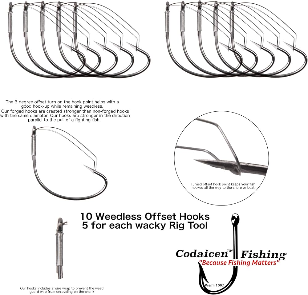 تتيح لك خطافات CODAICEN WACKY WEEDLESS إمكانية الرمي في منصات الزنبق، من خلال الحشائش وتحت الأرصفة أو في أي مكان يتسكع فيه الجهير. ستساعدك هذه الخطافات رقم 1 بدون أعشاب على الابتعاد عن معظم العوائق.