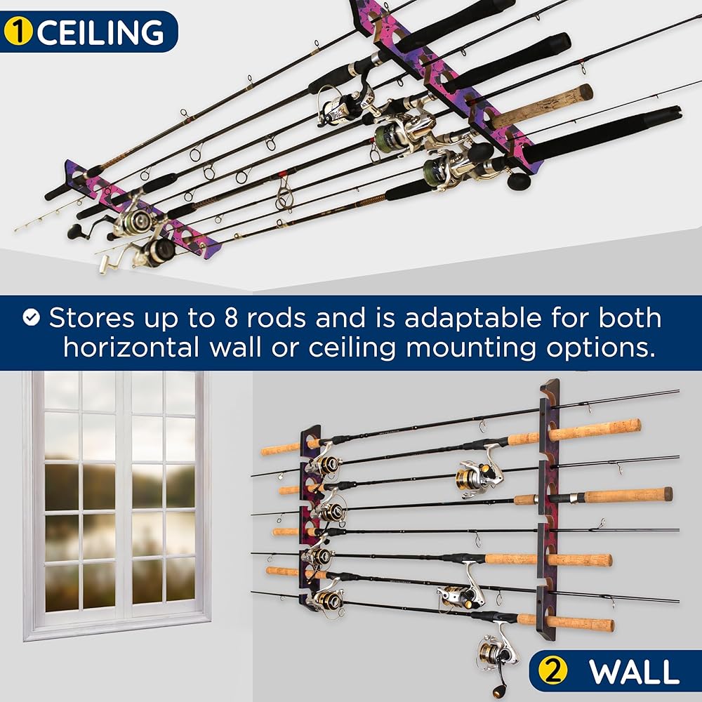 ADAPTABLE FISHING ROD STORAGE: Holds up to 8 rod and reel combos, and you can adjust the spacing of the rack to suit your rod length (rods not included)