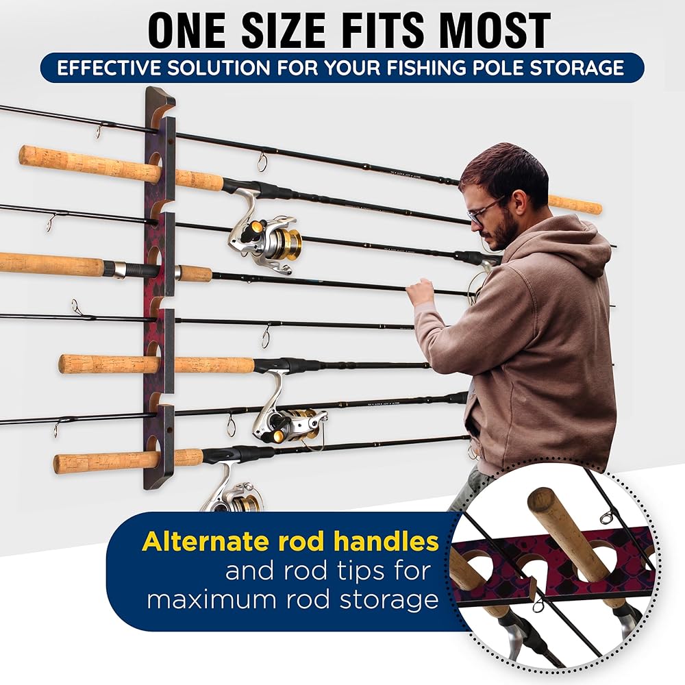 INNOVATIVE DESIGN: Adjust the spacing from the bottom and top piece of the fishing rod rack to accommodate your rod length