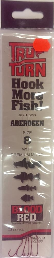 Tru Turn 863G Aberdeen Snelled Fish Hooks, 5 Pack (Red) Size 8 Snelled Fishing Hooks.