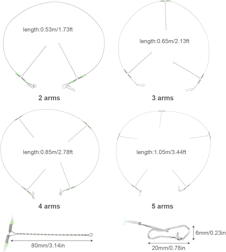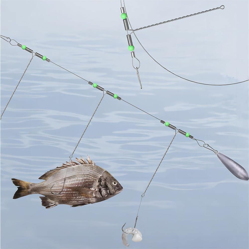 【Reliable material】Fishing Rigs are made of high-strength stainless steel, strong and durable, excellent abrasion resistant, and anti-corrosion. The twisted wire arms are flexible enough and durable, and the equipped snaps won't be bent open, won't lose your hook, and help you catch fish effortlessly.
