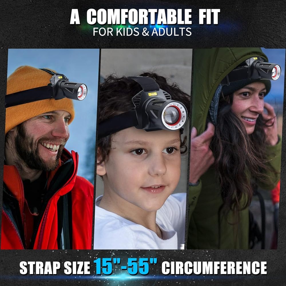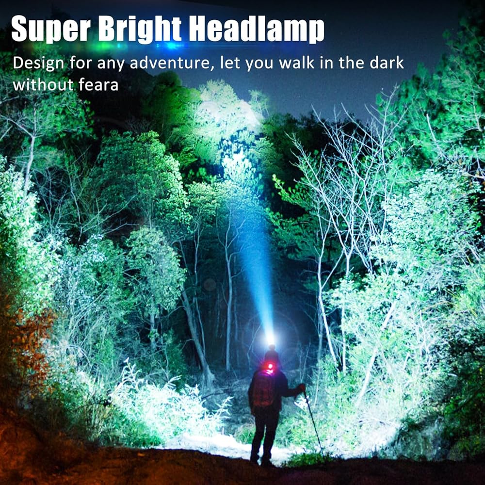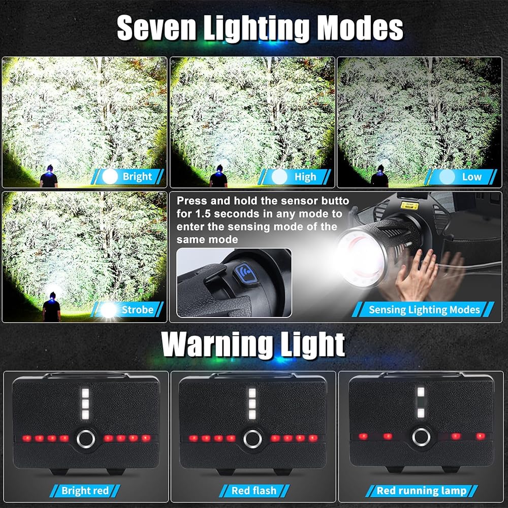 【مصباح أمامي LED عالي الجودة】-- مع خرزات مصباح LED المطورة، فهو أكثر إشراقًا وإشراقًا ويدوم لفترة أطول مما تعتقد. يوفر سطوعًا بحد أقصى 130000 لومن يصل إلى 800 م - 1800 م. قوة اختراق قوية وسعة جيدة، مناسبة لمختلف الأنشطة في الليل.