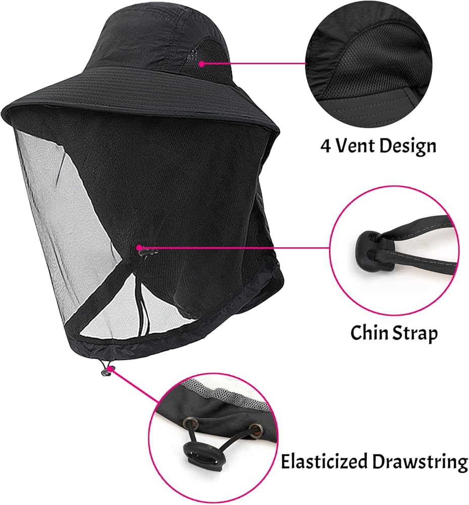 حماية شبكية: قبعة البعوض ذات الشبكة تقوم بأكثر من مجرد حمايتك من الشمس والحشرات؛ كما أنه يساعد على منع الغبار أو الحطام من الوصول إلى وجهك. تتميز كل قبعة شمسية للسيدات بأشرطة قابلة للتعديل عند الذقن وحول الشبكة لملاءمة قابلة للتخصيص