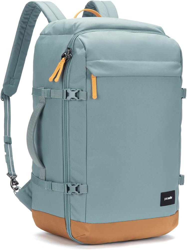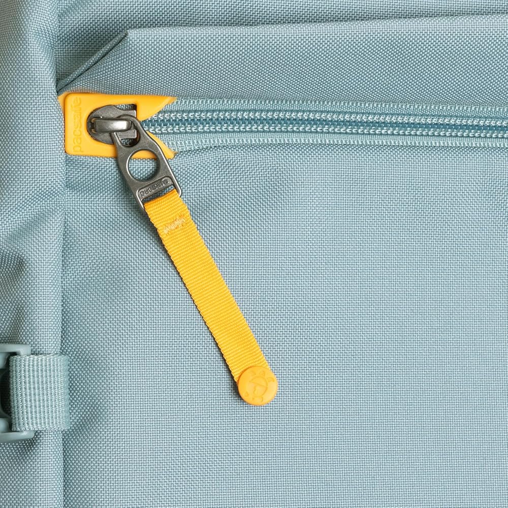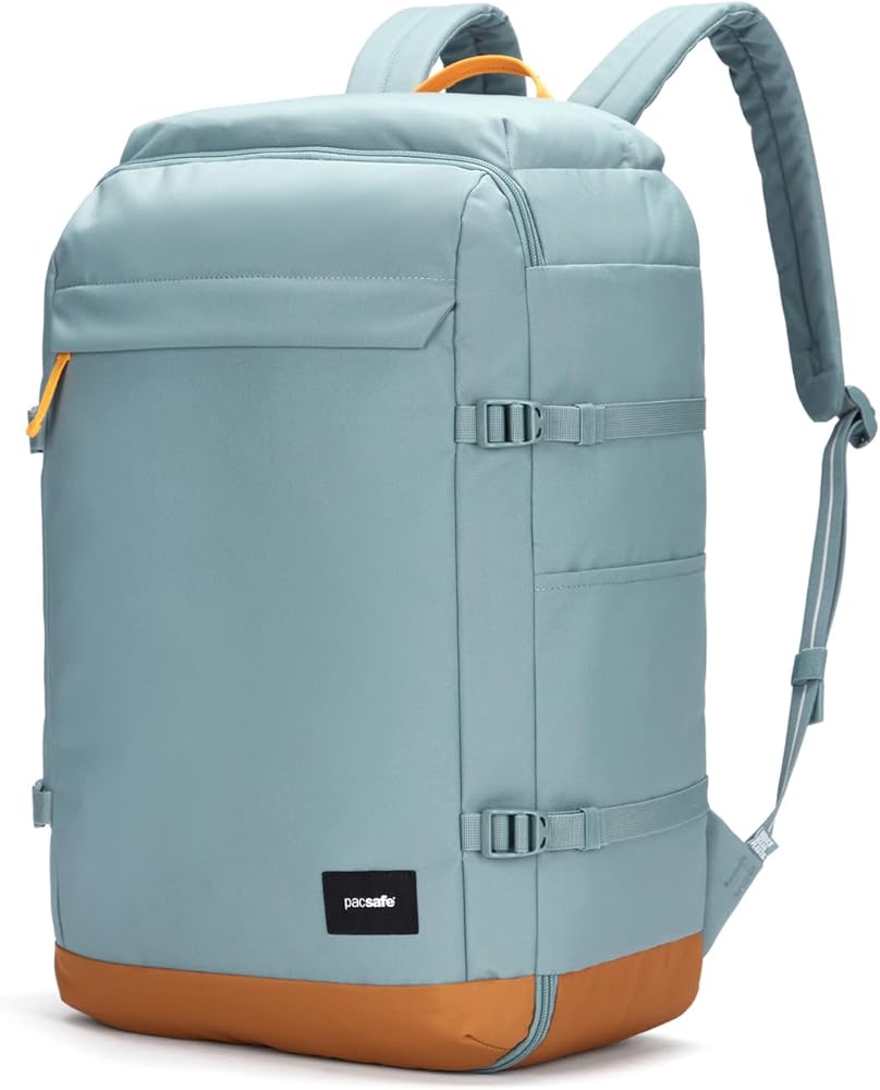 DIMENSIONS, WEIGHT & WARRANTY - 20.9"H x 13.39"W x 7.9"D Weight: 1.85 lbs. Made of soft, durable, water resistant & easy to wipe clean recycled polyester to ensure secure & long-lasting usage everyday & during weekends. Comes with 5-year Pacsafe warranty.
