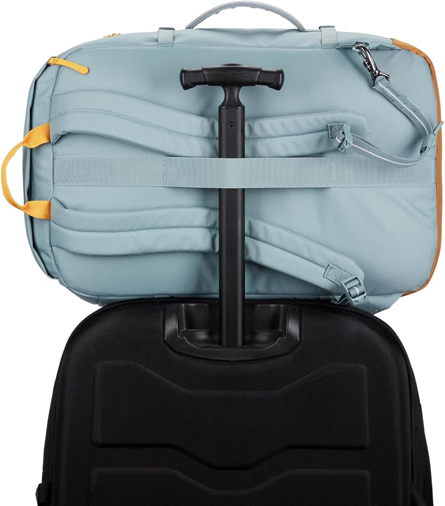 PERFECT FOR TRAVEL - Carry-on friendly bag can be worn as a backpack or carried as suitcase. Front pocket fits A4 document binder for quick access to important documents, with a handy luggage slip. Features external compression straps for ease of carrying.