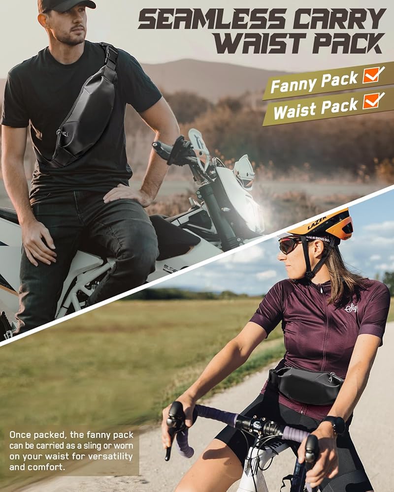 • UNLOCKING STYLE: Waist Pack allows you to choose different carrying options depending on your clothing style, wear it in front of your waist or whatever you want, back on your hip, slant across your chest, or over your shoulder. Elevate convenience and organization with this lightweight marvel to make free exploration.