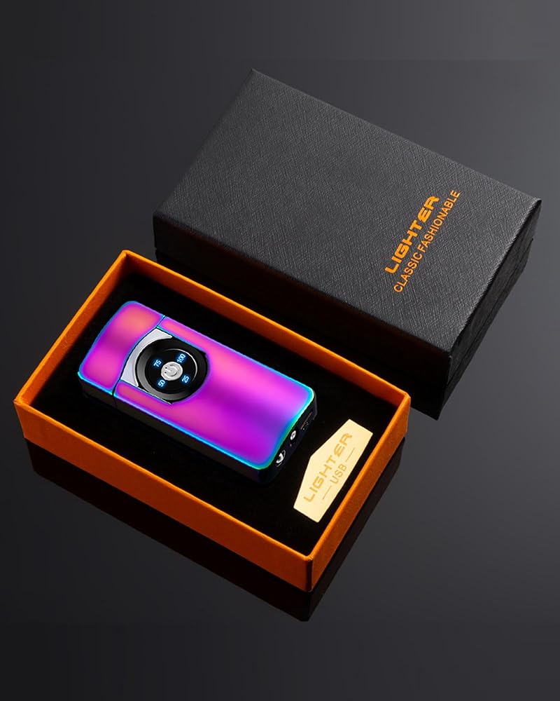 ولاعات قوس كهربائي قابلة لإعادة الشحن، ولاعة بلازما USB لهب دوار بارد مقاوم للرياح مع جهاز عرض