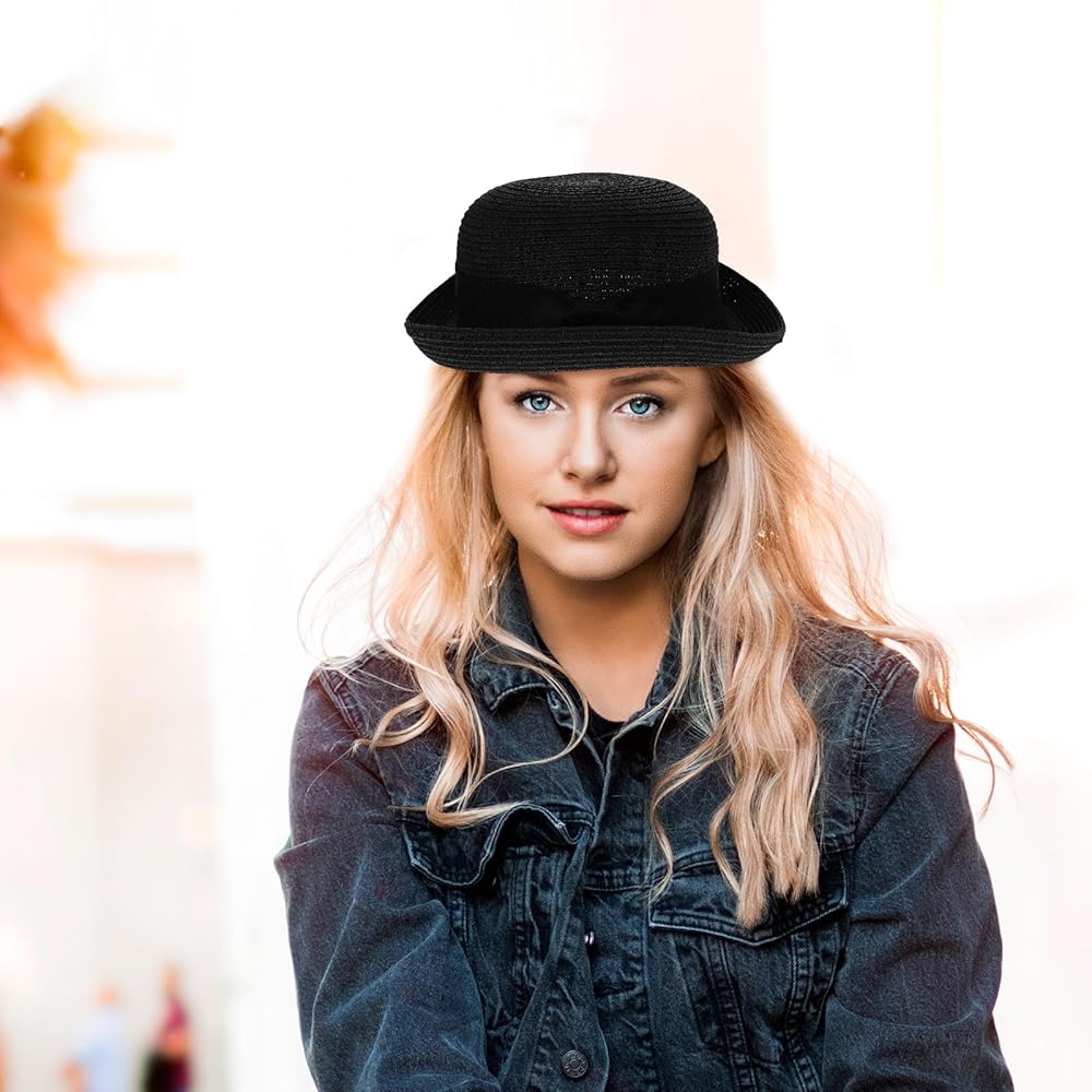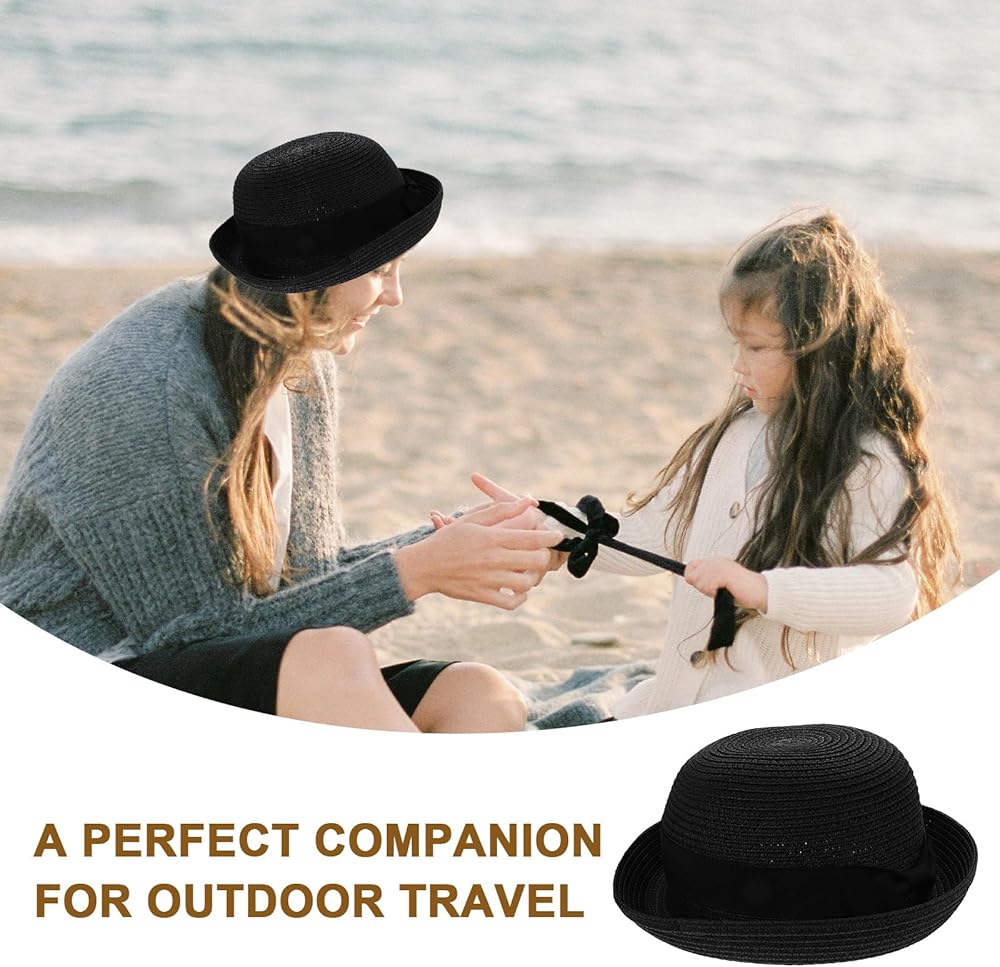 - and Women's Girls Bowknot Roll-up Wide Brim Dome Straw Summer Sun Hat Bowler Beach Cap straw sun hats for women.