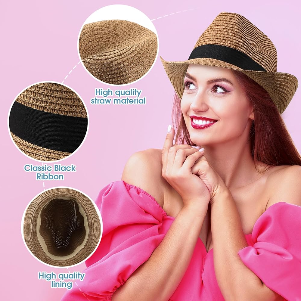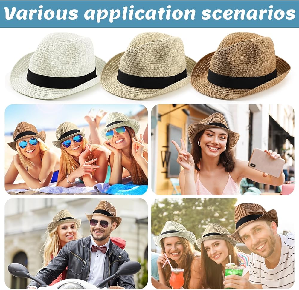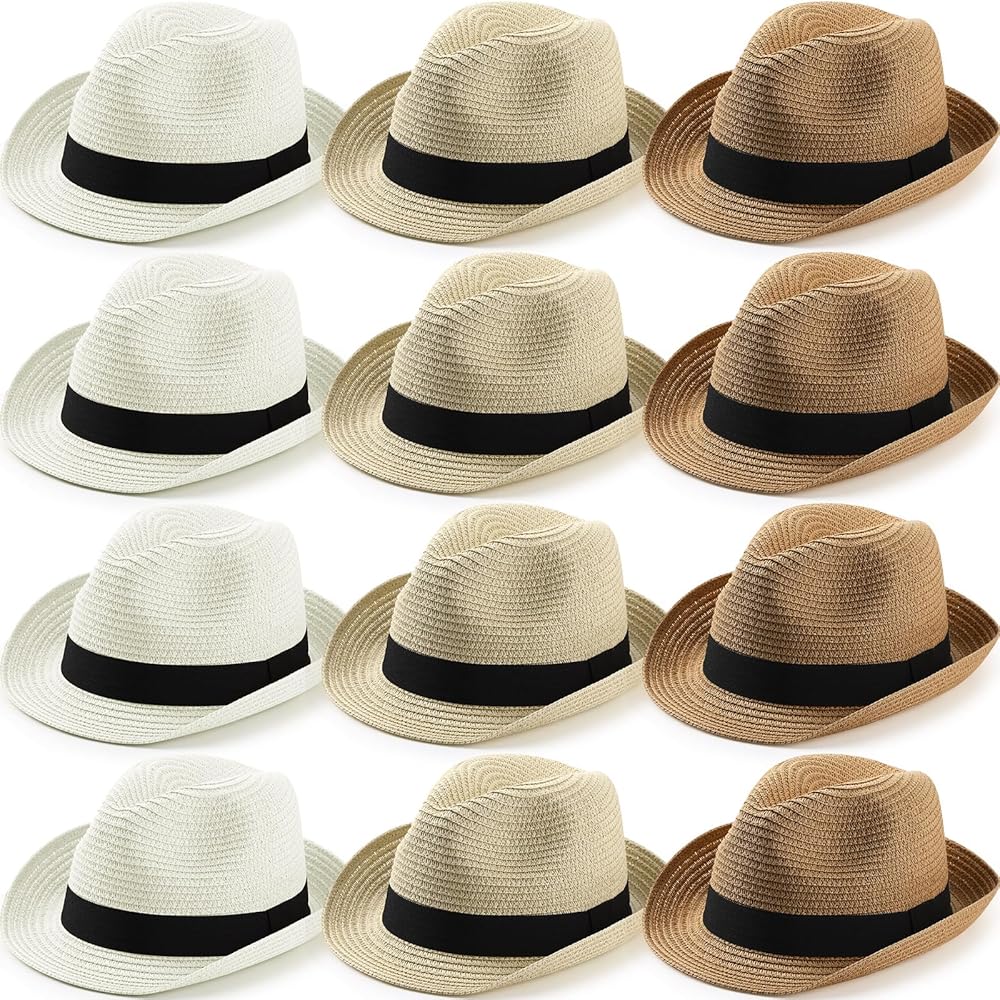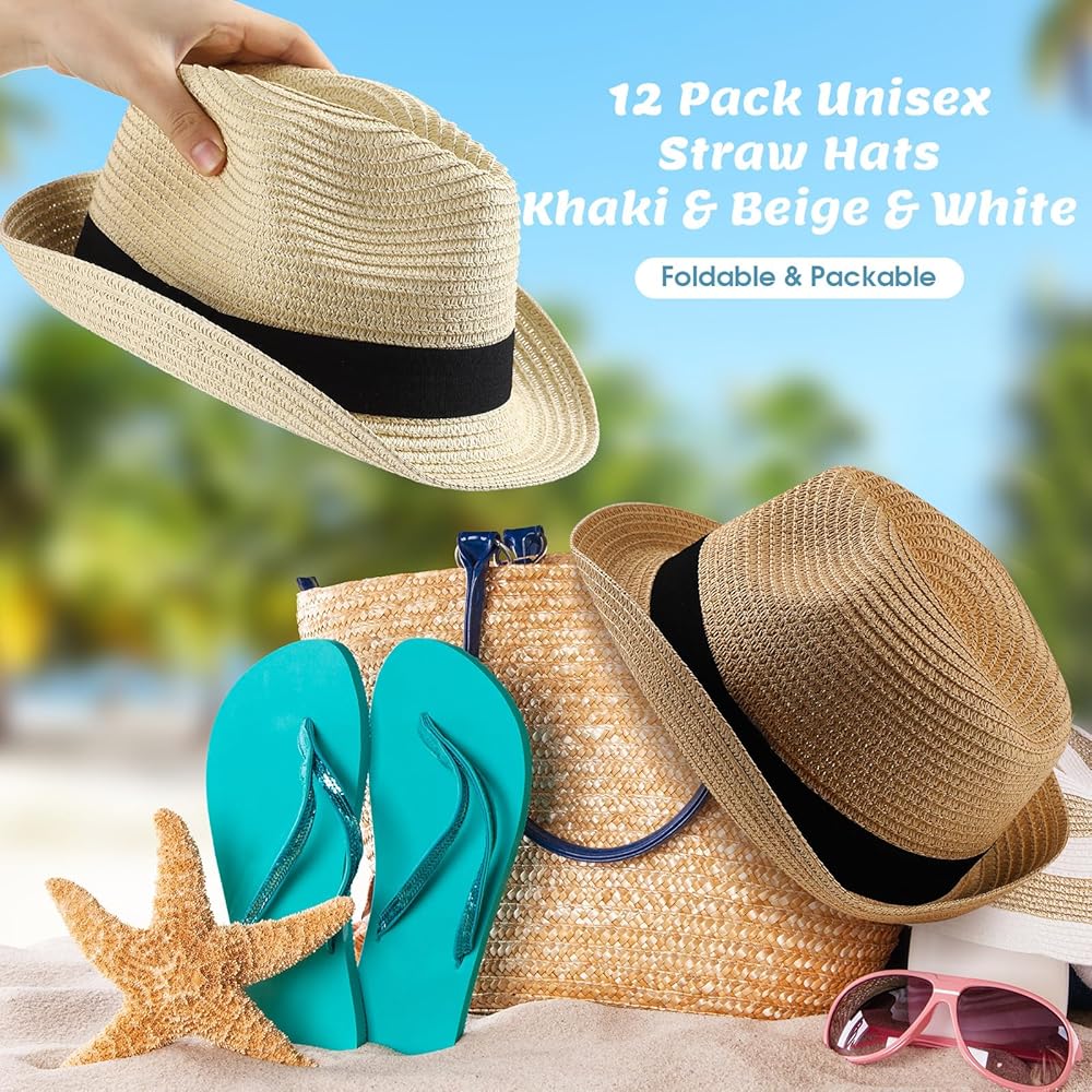 Sintege 12 قطعة قبعة صيفية للشمس للنساء والرجال قبعة من القش قابلة للطي من القش ذات حافة قصيرة بنما قبعة شاطئ بنما قابلة للتعبئة للسيدات والرجال لقضاء العطلات، كاكي بيج وأبيض