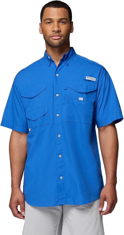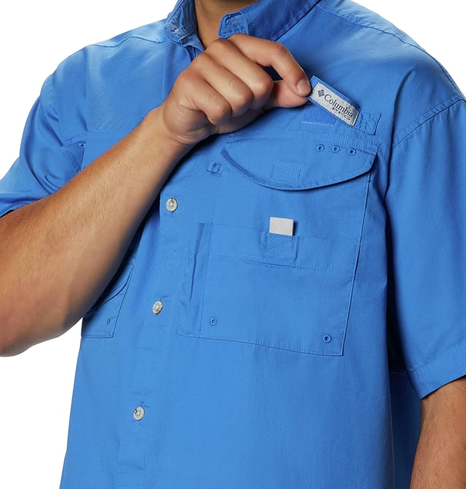 Designed to meet the needs of active anglers, this shirt is made of soft 100% cotton poplin for an easy fit.Made to fish with plenty of pockets and a rod holder to help free up your hands while you tie your next lure.A mesh-lined vented back keeps things breezy and comfortable, while a utility loop keeps gear handy.Columbia offers this short sleeve shirt in multiple colors and sizes.Extended sizing available.Relaxed Fit.To ensure the size you choose is right, utilize our sizing chart and the following measurement instructions: To determine the neck size, measure at the base or thickest part of your neck.For the chest, measure at the fullest part of the chest, under the armpits, and over the shoulder blades, keeping the tape measure firm and level.