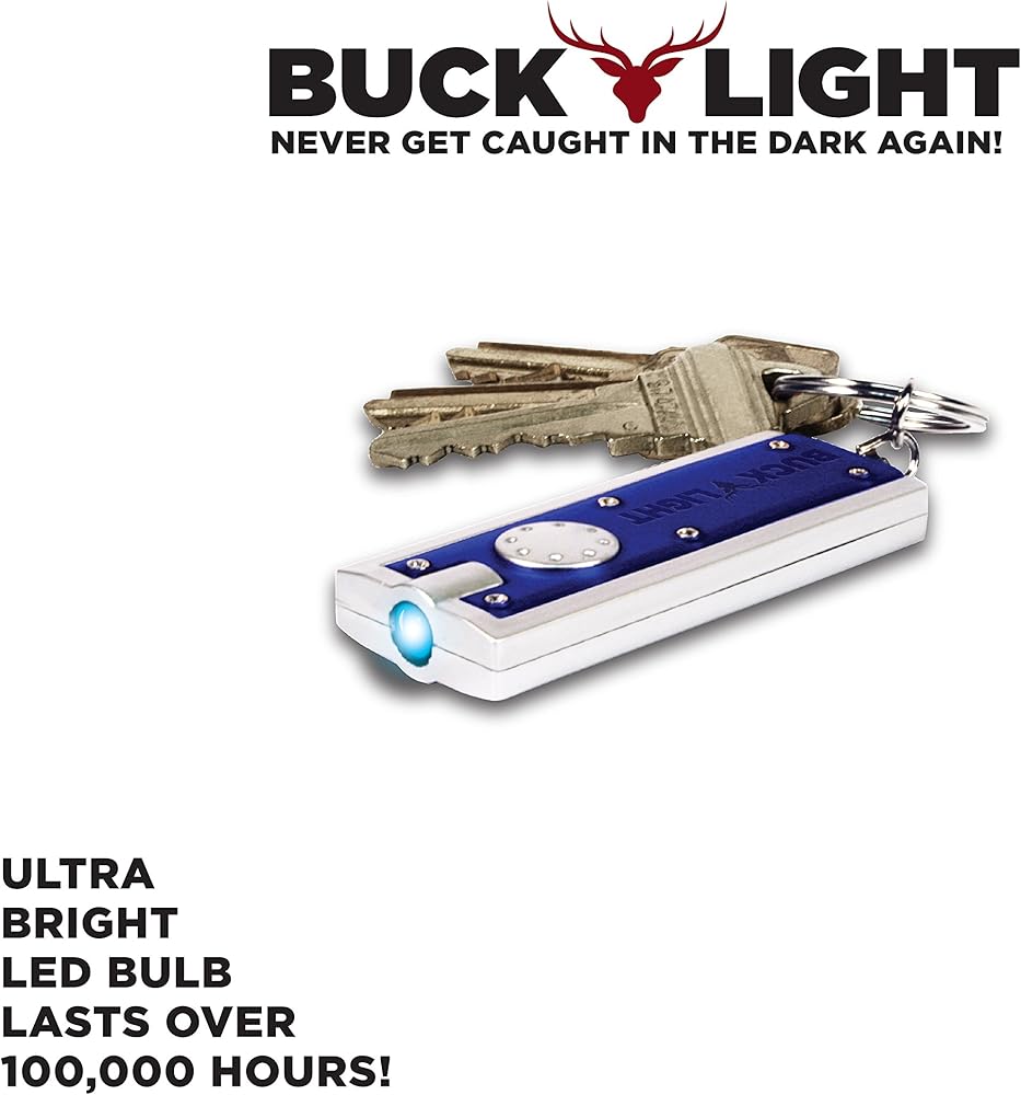Don't get caught in the dark ever again! The Buck Light is a powerful LED keychain light ! Put'em everywhere: kitchen, bedroom, toolbox, office, care, boat, RV, & more! The ultra-bright LED bulb lasts for over 100,000 hours. Buck Light fits in your pocket and your keychain so you'll always have a personal light at hand! Easy to Use Long Lasting and Incredibly Bright Convenient to Carry Tough and Durable