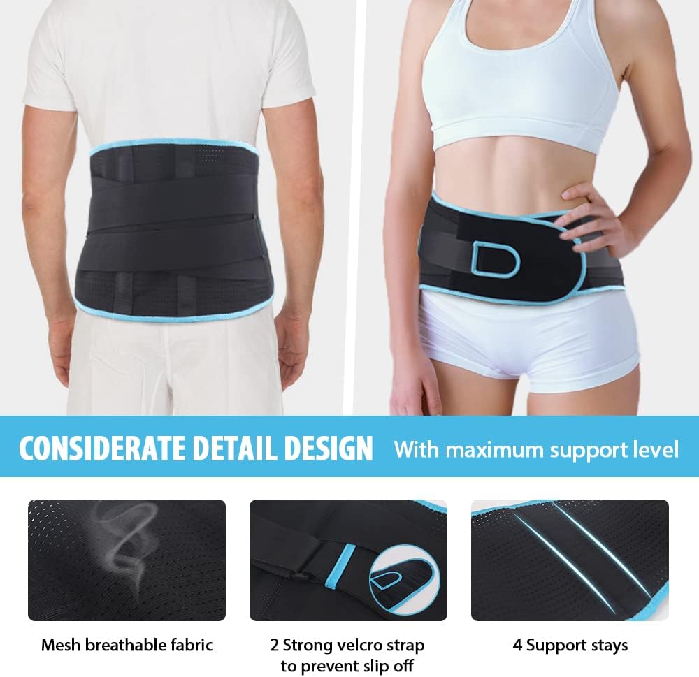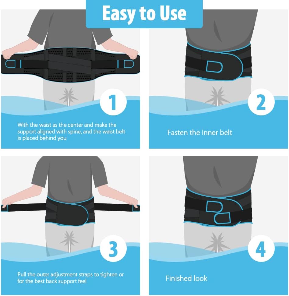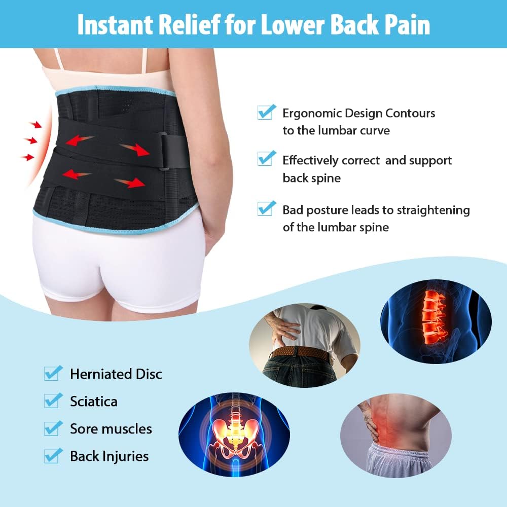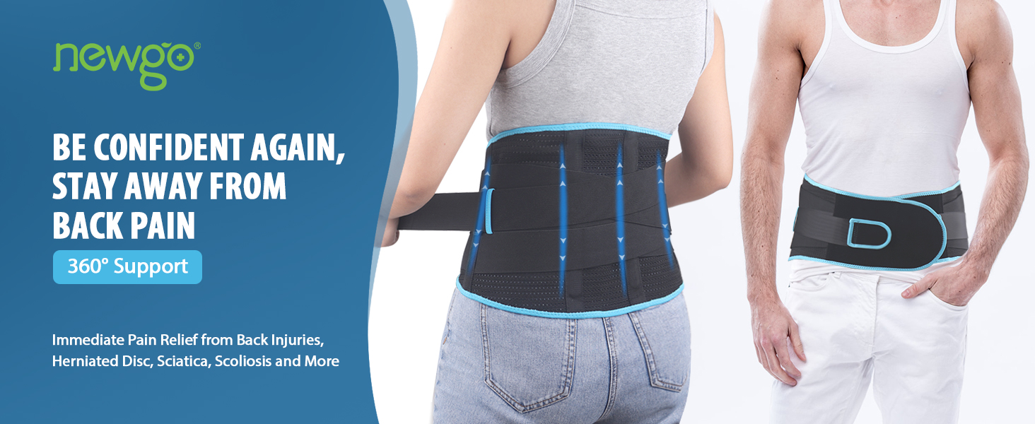 【تصميم مراعي】تم تصميم دعم الظهر من NEWGO بأربعة نوابض مرنة موضوعة على طول جانب الخصر لتوفير دعم أقوى بمقدار 360 درجة لأسفل الظهر، وشريطين قابلين للتعديل على جانبي الخصر لتوفير دعم إضافي للضغط.