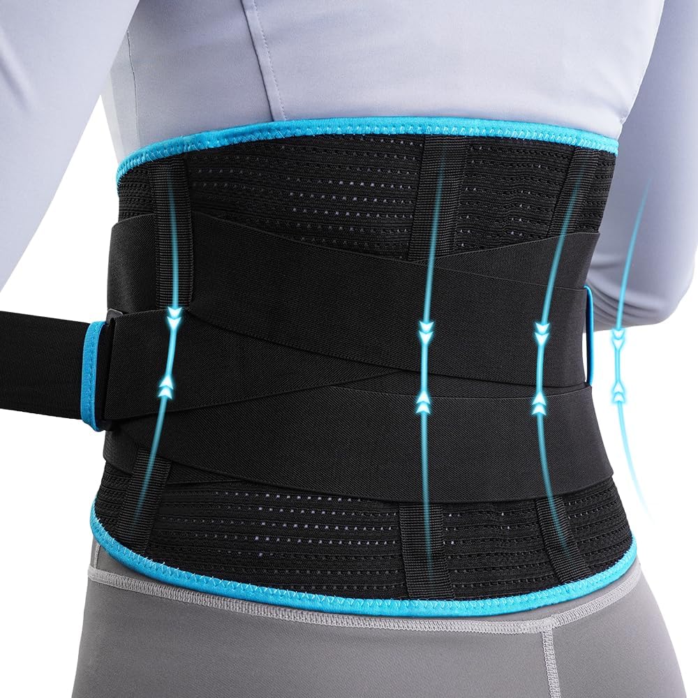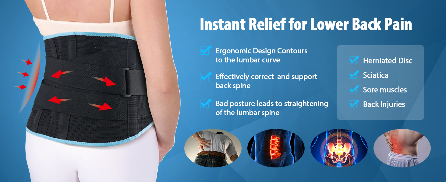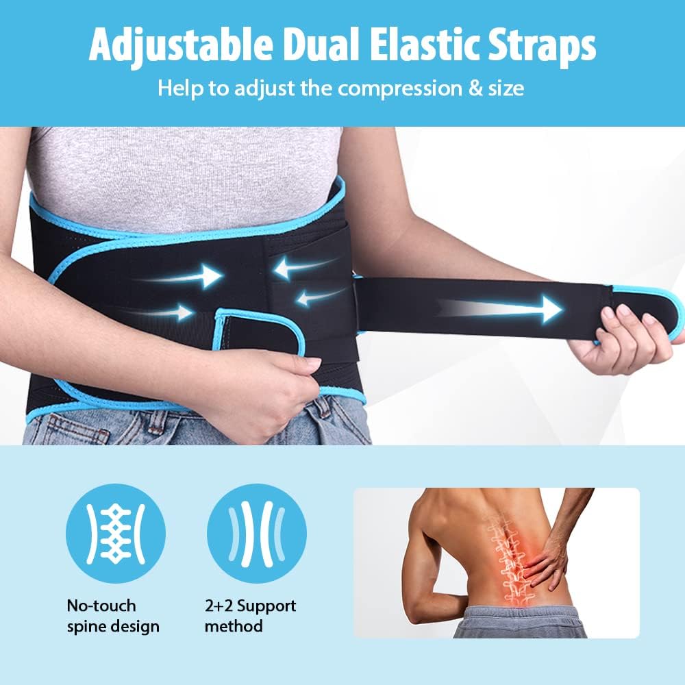 【تصميم مراعي】تم تصميم دعم الظهر من NEWGO بأربعة نوابض مرنة موضوعة على طول جانب الخصر لتوفير دعم أقوى بمقدار 360 درجة لأسفل الظهر، وشريطين قابلين للتعديل على جانبي الخصر لتوفير دعم إضافي للضغط.