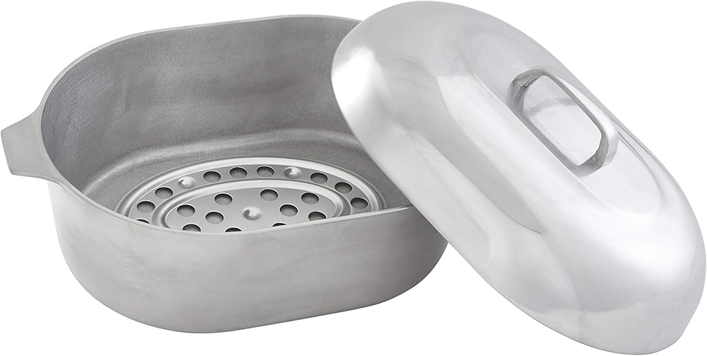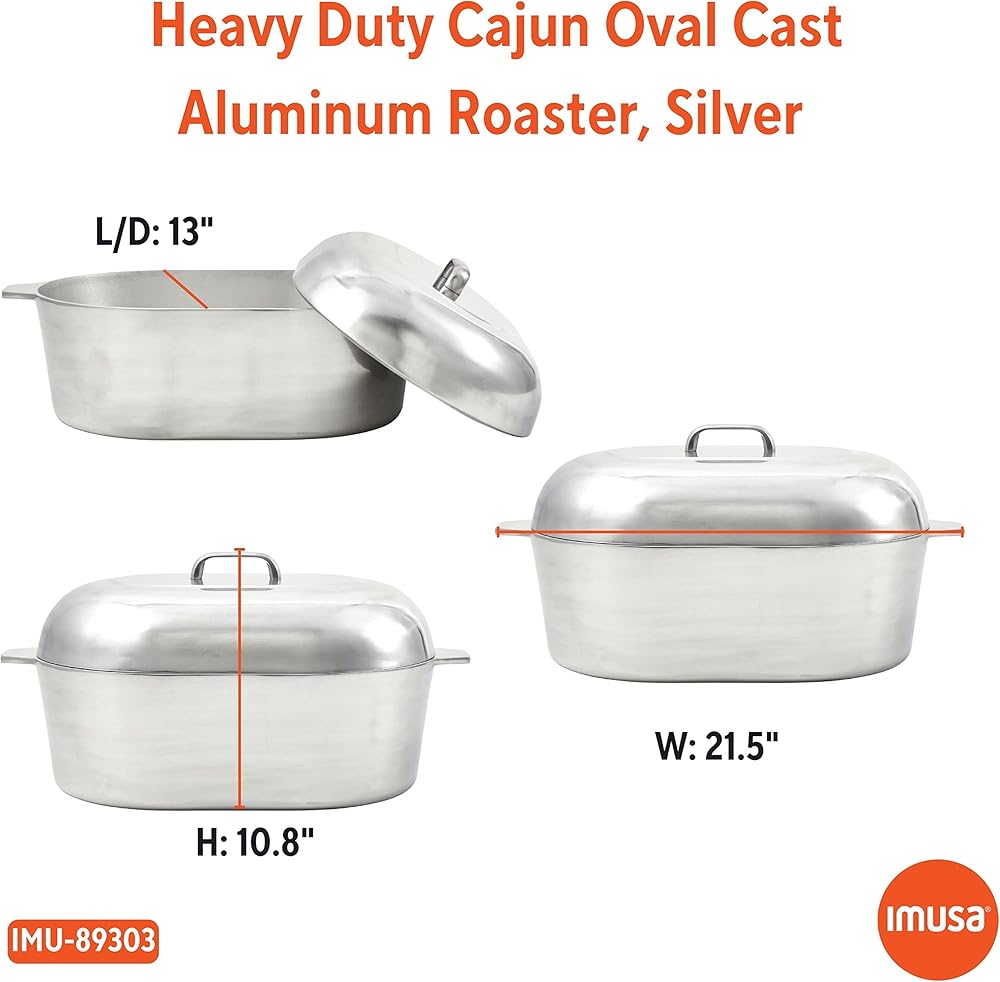 The IMUSA Cajun 18-inch oval aluminum roaster. This Cajun classic roaster is heavy-duty cast aluminum construction for fast even heating, easy cleaning and low maintenance.