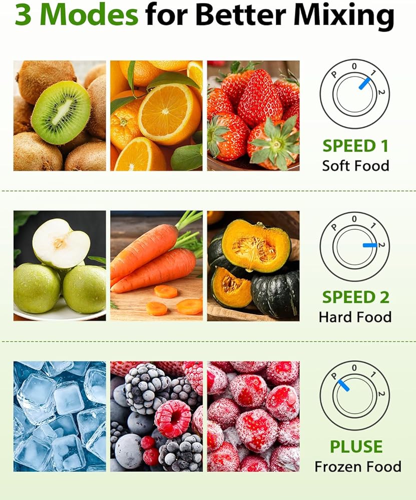 • 3 خيارات للمزج، خلط مريح - يحتوي هذا الخلاط المخصص للمطبخ على 3 خيارات للمزج لمختلف الأطعمة. قم بتحميله بالأطعمة مثل المكسرات والبذور والفواكه والخضروات، ثم قم بلف الكوب لقفله واختيار الوضع المناسب لصنع العصائر والحليب المخفوق والعصائر والمزيد.