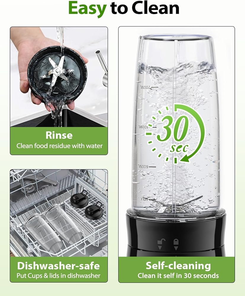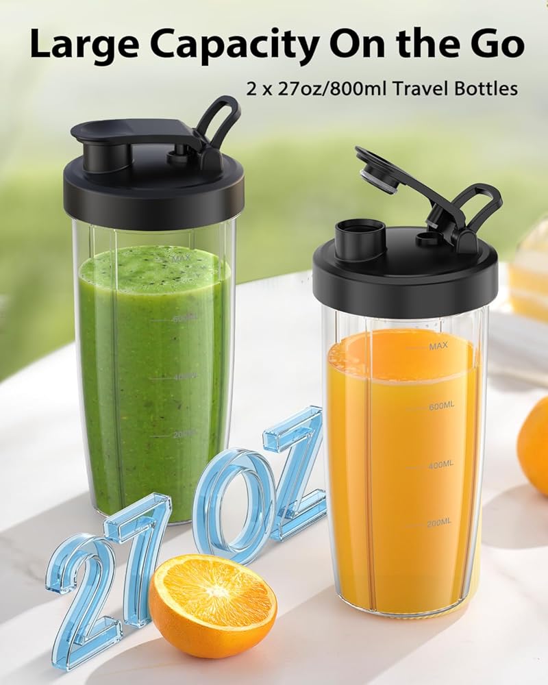 • سعة كبيرة للغاية ومريحة أثناء التنقل - يتميز الخلاط الشخصي بزجاجتي خلاط خالية من مادة BPA سعة 27 أونصة لتلبية احتياجاتك الغذائية اليومية. تضيف الخطافات المحمولة والأغطية القابلة للتنقل إمكانية نقل إضافية للحمل إلى المكتب أو صالة الألعاب الرياضية أو الفصل الدراسي أو السيارة أو في حقيبتك.