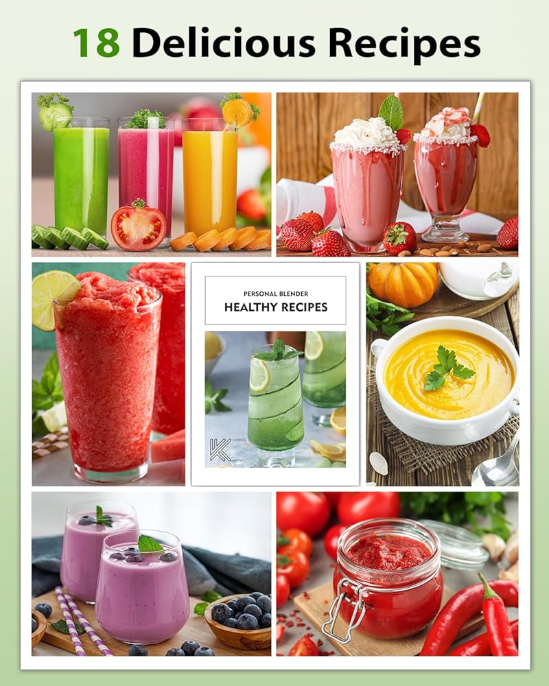 • الإلهام للوصفات الصحية - هل تشعر بالقلق بشأن كيفية تحضير المشروبات الصحية؟ يتيح لك كتاب الوصفات المتضمن إعداد 18 طبقًا بسرعة وسهولة ولذيذة. استخدمي وضع النبض لخلط مكعبات الثلج، ولا تتجاوز كمية مكعبات الثلج نصف الكوب. أضف أكثر من نصف كوب من السائل للحصول على مزيج متجانس.