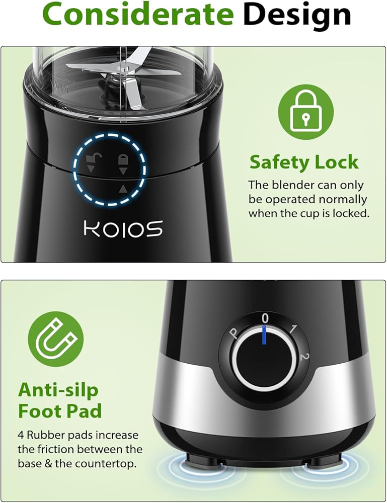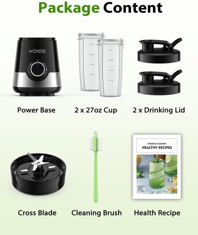 خلاط عصير koios، خلاطات 900 واط للمطبخ مع زجاجات محمولة وأغطية صنبور 27 أونصة خالية من مادة bpa، 3 أوضاع خلاط خلاط شخصي لمخفوق العصائر والمشروبات المجمدة وأغذية الأطفال، وصفة مغذية