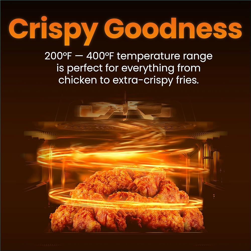FAST AND EASY: This small air fryer comes prepared for any culinary challenge. The capacitive touch screen display can customize your cooking time and temperature up to a maximum of 400°F! Cook food fast up to three times quicker than an oven.