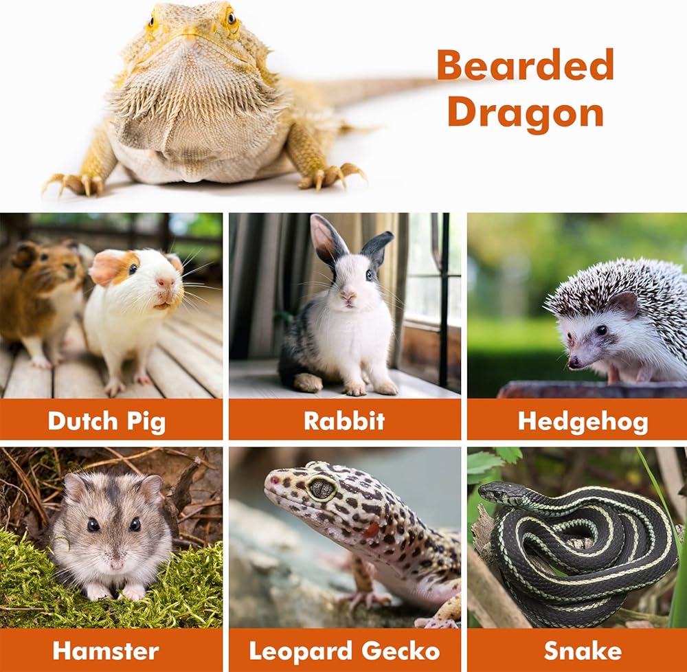 • تصميم الزر: تتميز الفتحة بتصميم الزر، لذلك يمكنك ضبط حجم الفتحة وفقًا لحجم التنين الملتحي الخاص بك، وهو مناسب للتنانين الملتحية من جميع الأعمار والحيوانات الصغيرة الأخرى.