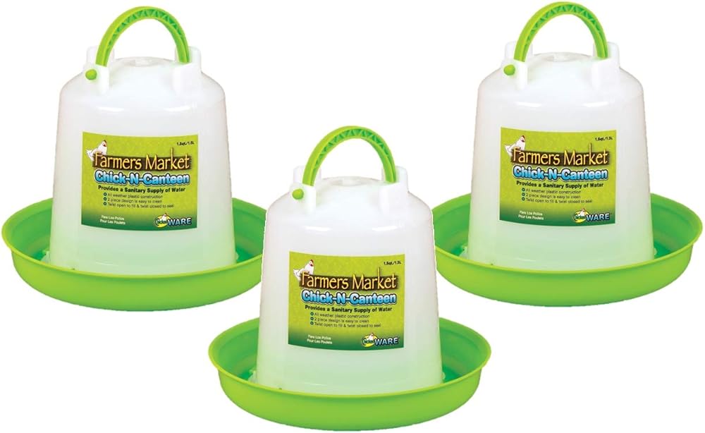 Chick-N-Canteens provide a sanitary supply of water for the backyard flock. Featuring all-weather plastic construction and a 2 piece design that's easy to clean and fill, they are available in 3 sizes.