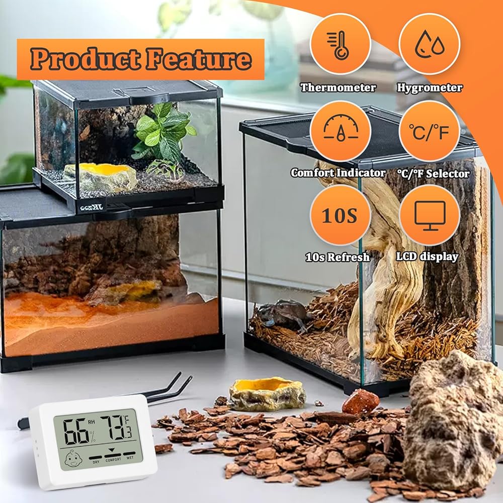 【ضرورية للزواحف】يلبي مقياس حرارة الزواحف من Thlevel حاجة الرطوبة. تحقق بسهولة من بيئة معيشة حيوانك الأليف. يتم تحديث البيانات كل عشر ثوانٍ، مما يسمح لك بمراقبة درجة الحرارة الصحيحة عن كثب لضمان قدرتك على مراقبة بيئة معيشة السحلية أولاً، وهي ملحقات خزان ممتازة جدًا!