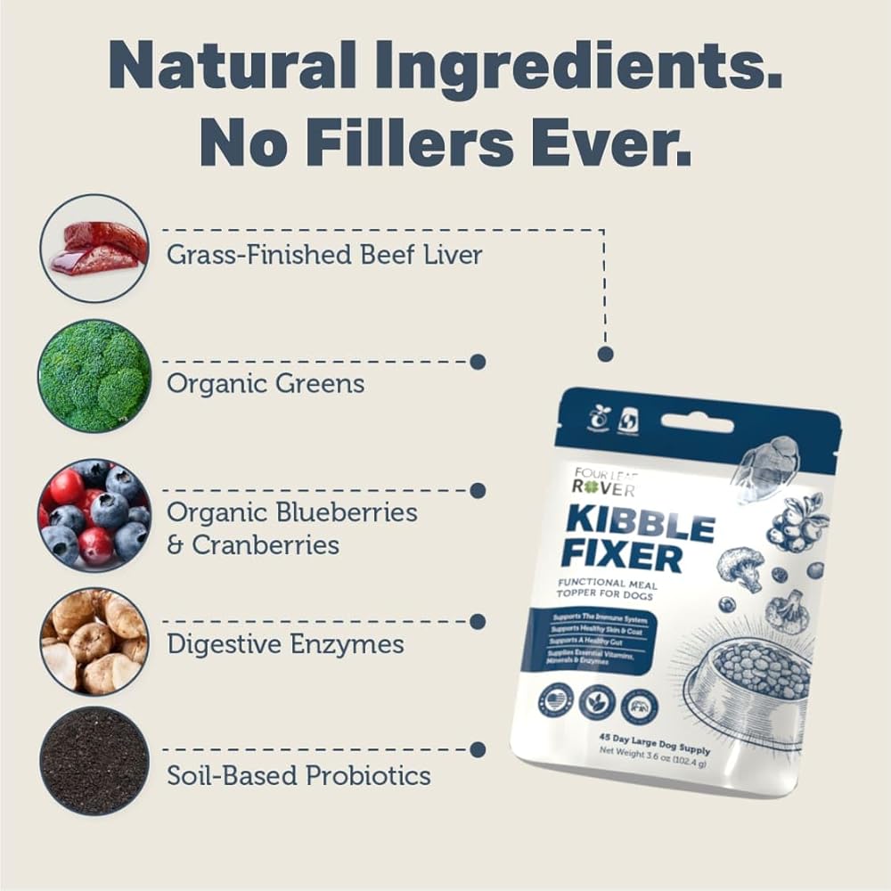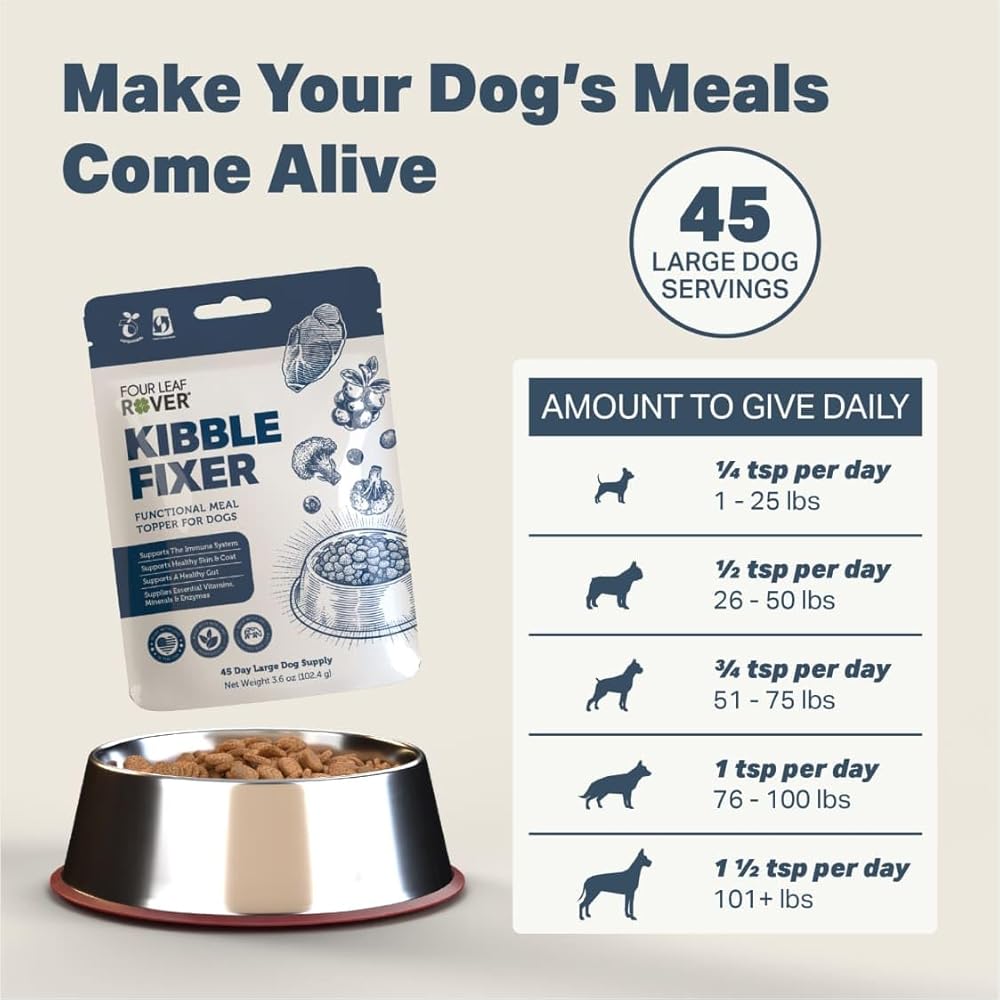 لذيذة ومغذية: قم بتحويل أي وجبة إلى وليمة ذواقة مع غطاء الكلب الخاص بنا. يعتبر Kibble Fixer المليء بالعناصر الغذائية أفضل طعام صحي للكلاب في النظام الغذائي لكل جرو