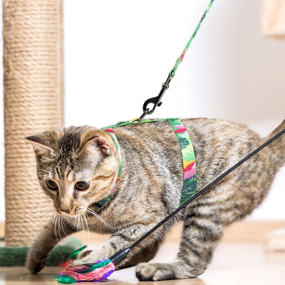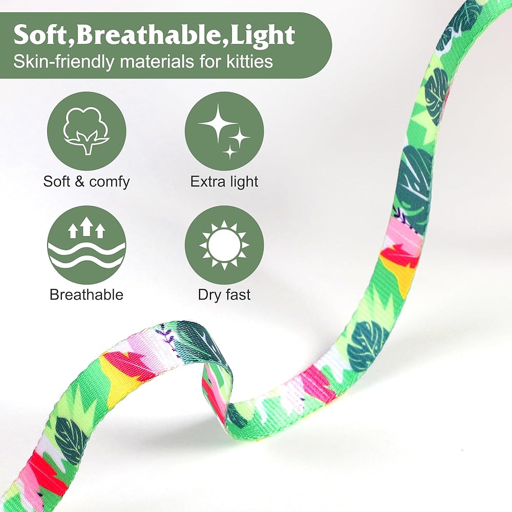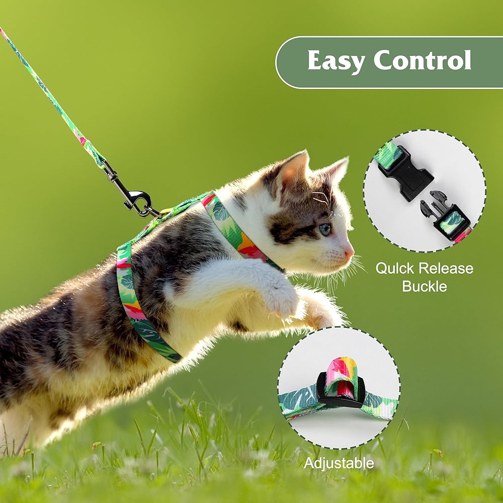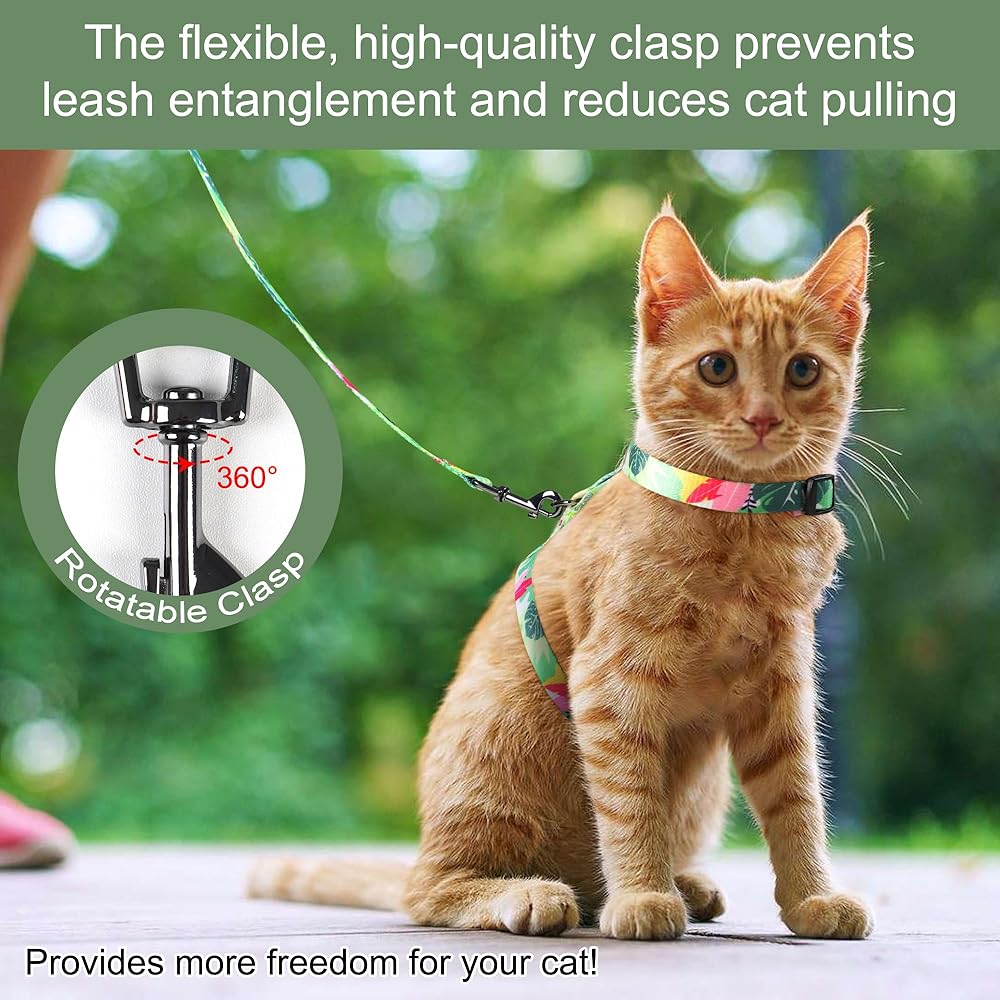 【لافتة للأنظار】تم تصميم مجموعة سرج ومقود القطط المتينة من ليكالوس من ألوان زاهية تجعل من السهل تحديد مكان قطتك، وتمنعها من الضياع أثناء المشي في الهواء الطلق. تصميم النمط الفريد سيجعل قطتك متميزة عن الحيوانات الأليفة الأخرى وتضيف بريقًا إلى حياتك اليومية.