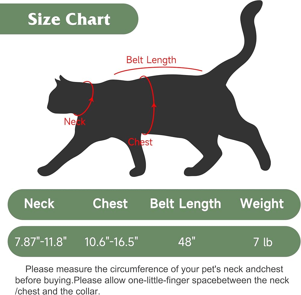 【سرج القطط قابل للتعديل】محيط الرقبة: 7 بوصة - 10 بوصة، محيط الصدر: 10 بوصة - 17 بوصة، العرض: 3/8 بوصة، طول السلسلة: 120 سم/47.2 بوصة، يرجى قياس قطتك بعناية والرجوع إلى جدول المقاسات قبل يتم وضع هذا المقود القياسي حول رقبة القطة وظهرها لتوزيع الضغط بالتساوي، وحجم قابل للتعديل لكل من القطط الصغيرة والقطط البالغة.