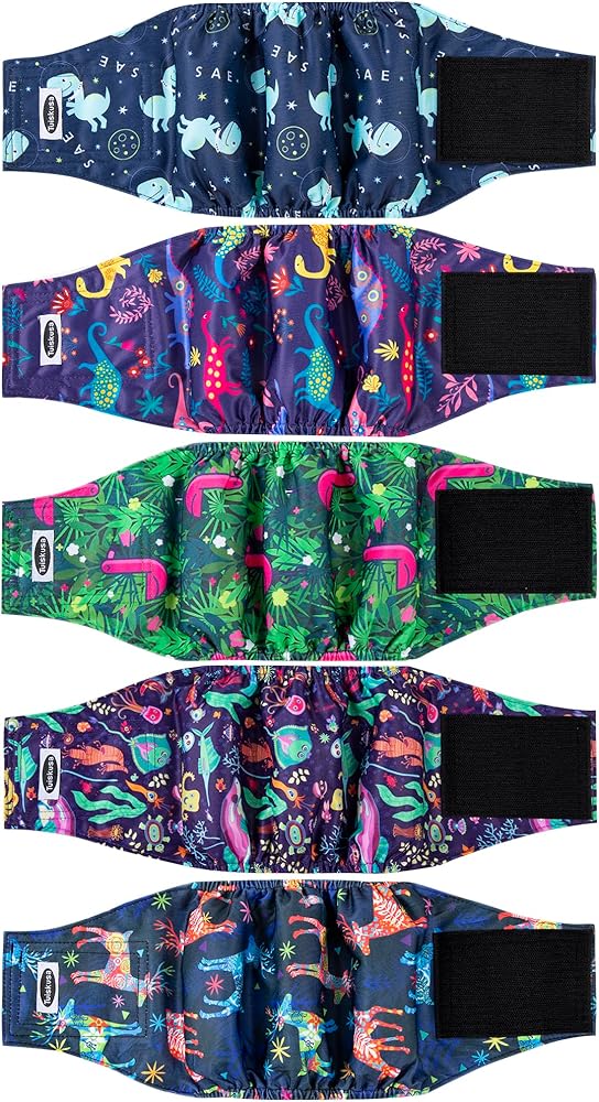 ملاءمة آمنة: تأتي الحفاضات مزودة بمشابك فيلكرو قوية لضمان بقائها في مكانها بشكل آمن على كلبك، مما يجعلها مناسبة لمختلف الأنشطة.