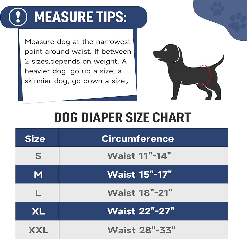 تصميم مريح: الحفاضات مصنوعة من نسيج ناعم وتصميم مريح لضمان راحة كلبك ومنع الاحتكاك والانزعاج.