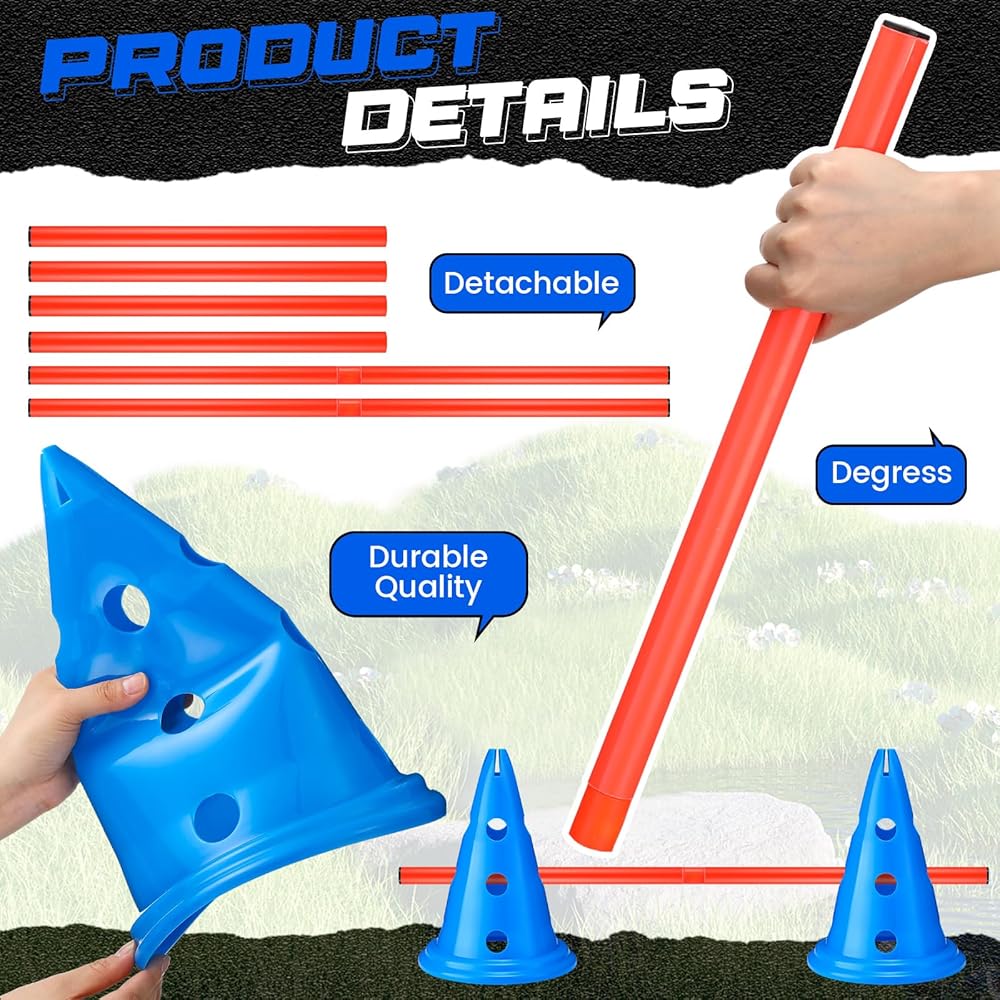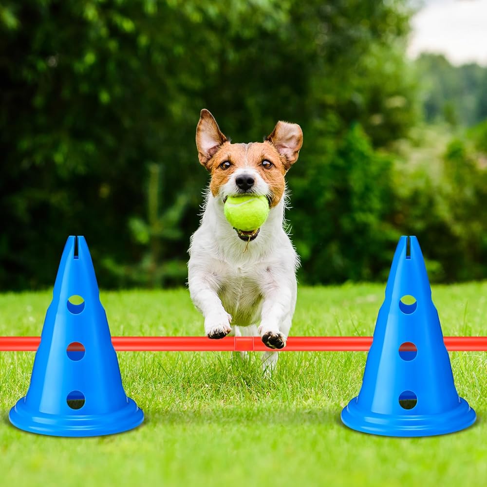 Reliable Material: crafted from sturdy plastic, this dog agility training equipment is built to withstand rigorous training sessions; The cones and rods are designed to be sturdy and long lasting, ensuring they can endure jumps, runs, and other activities; You can rely on this set to provide a reliable training experience for your dog