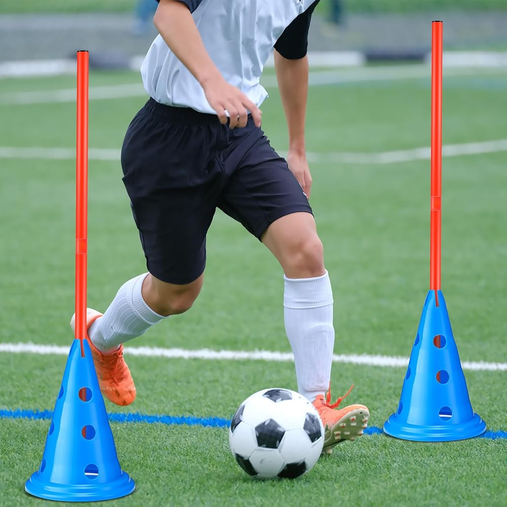 Detachable Agility Rods and Easy to Store: the agility poles measure approximately 31.5 inches/ 80 cm in length, which can be detachable into 2 sections, and each is about 15.7 inches/ 40 cm in length; This feature makes the set easy to store and transport, as it can be neatly packed into a compact size; Enjoy the convenience of setting up and storing your agility equipment with ease