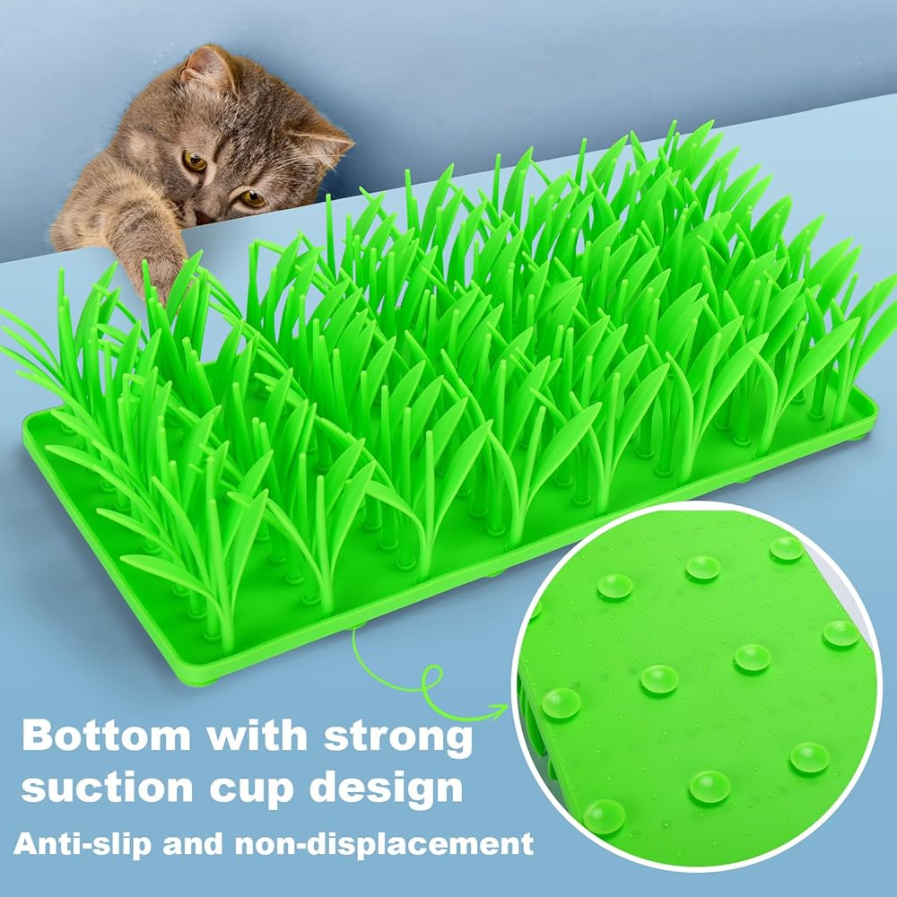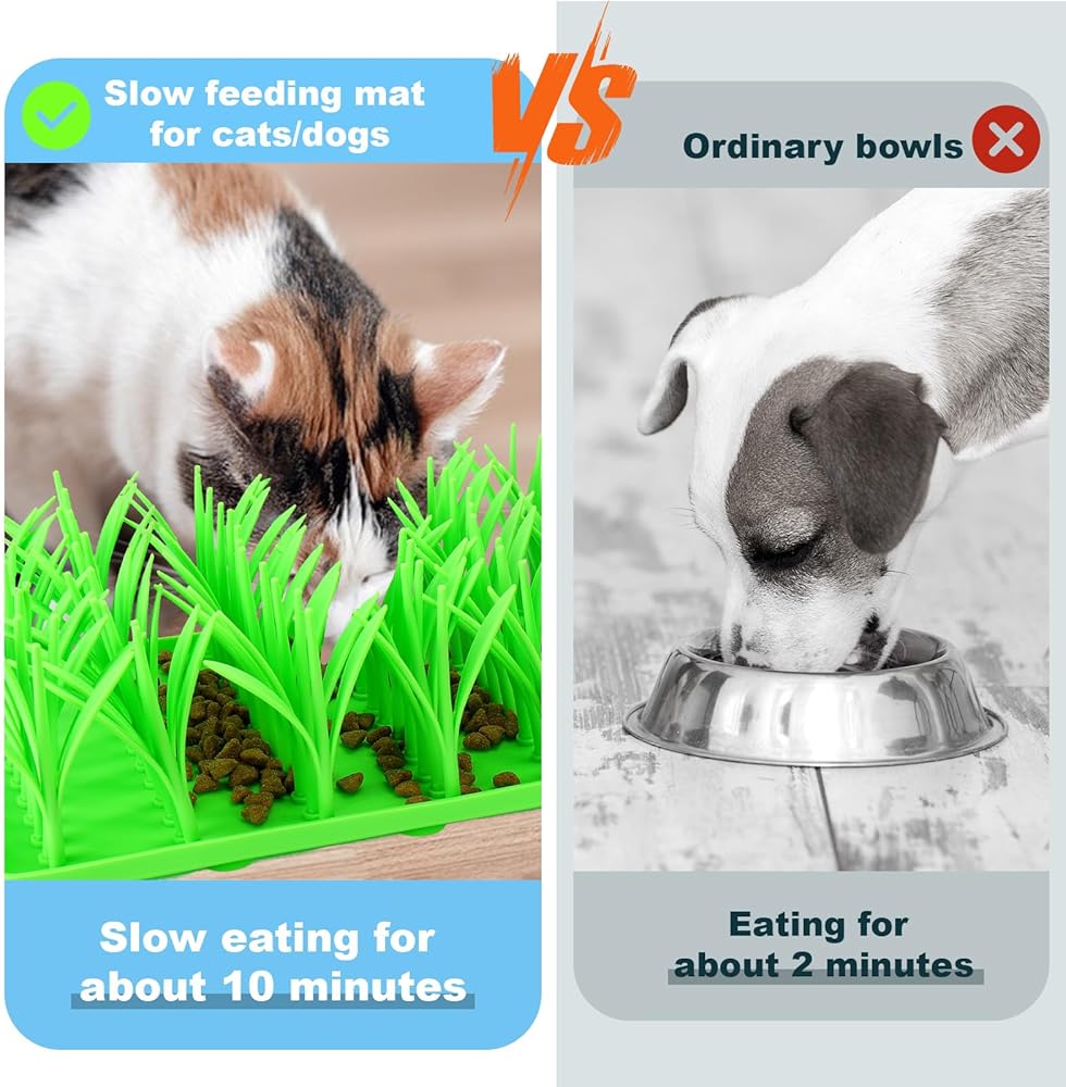 Grass mat for cats - Silicone grass mat for cats with interesting realistic grass design, the lifelike grass with nature green color, which can let your cats/dogs have a good meal time experience. Cat grass mat with slow feeding feature, can help your pet slow eating, digestive aid, protect your pets from choking or gagging