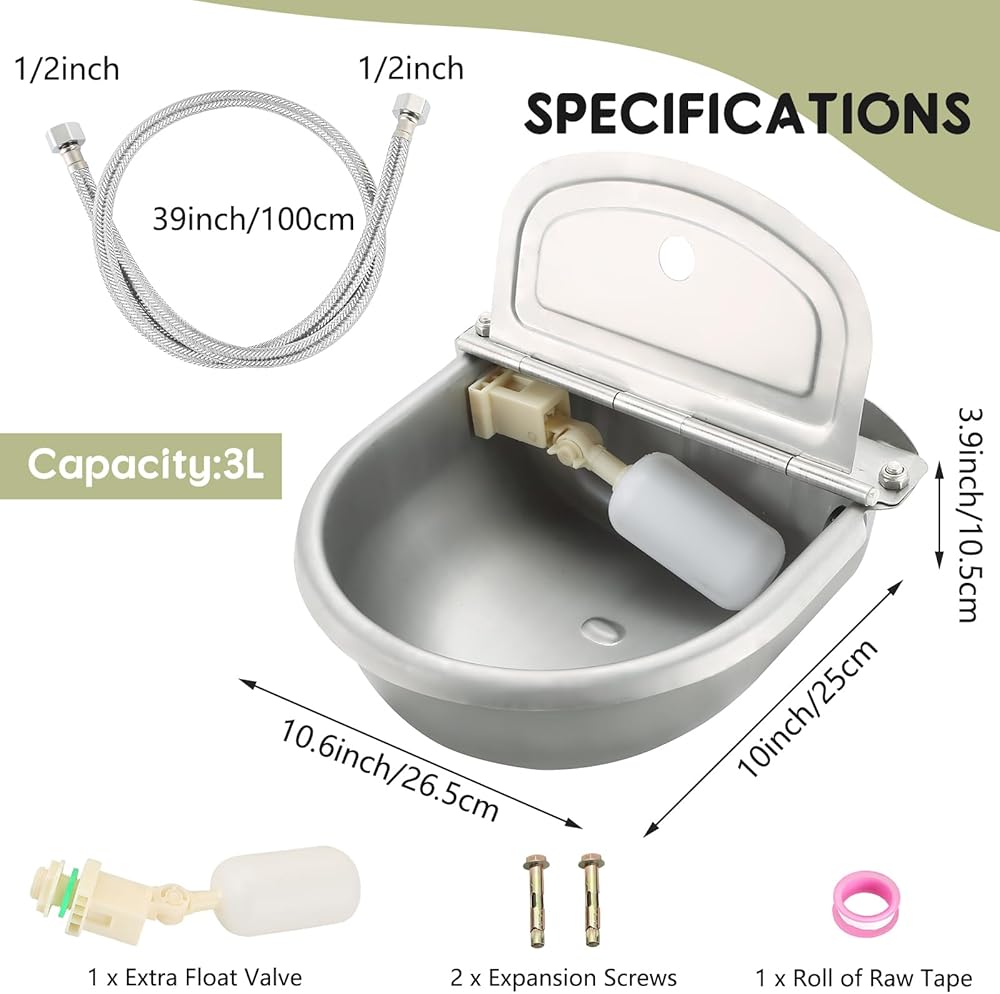 هيكل فاخر من الفولاذ المقاوم للصدأ: مصنوع من الفولاذ المقاوم للصدأ 304 عالي الجودة، ويضمن وعاء الماء الأوتوماتيكي الخاص بنا المتانة وسهولة الصيانة. حافظ على مياه الشرب الخاصة بحيواناتك الأليفة آمنة وصحية مع هذا الموزع الذي يدوم طويلاً وسهل التنظيف.