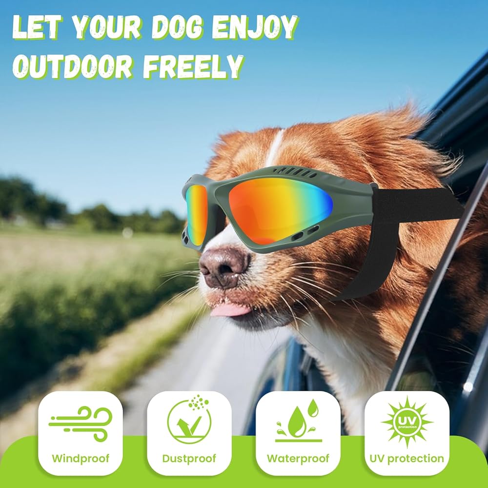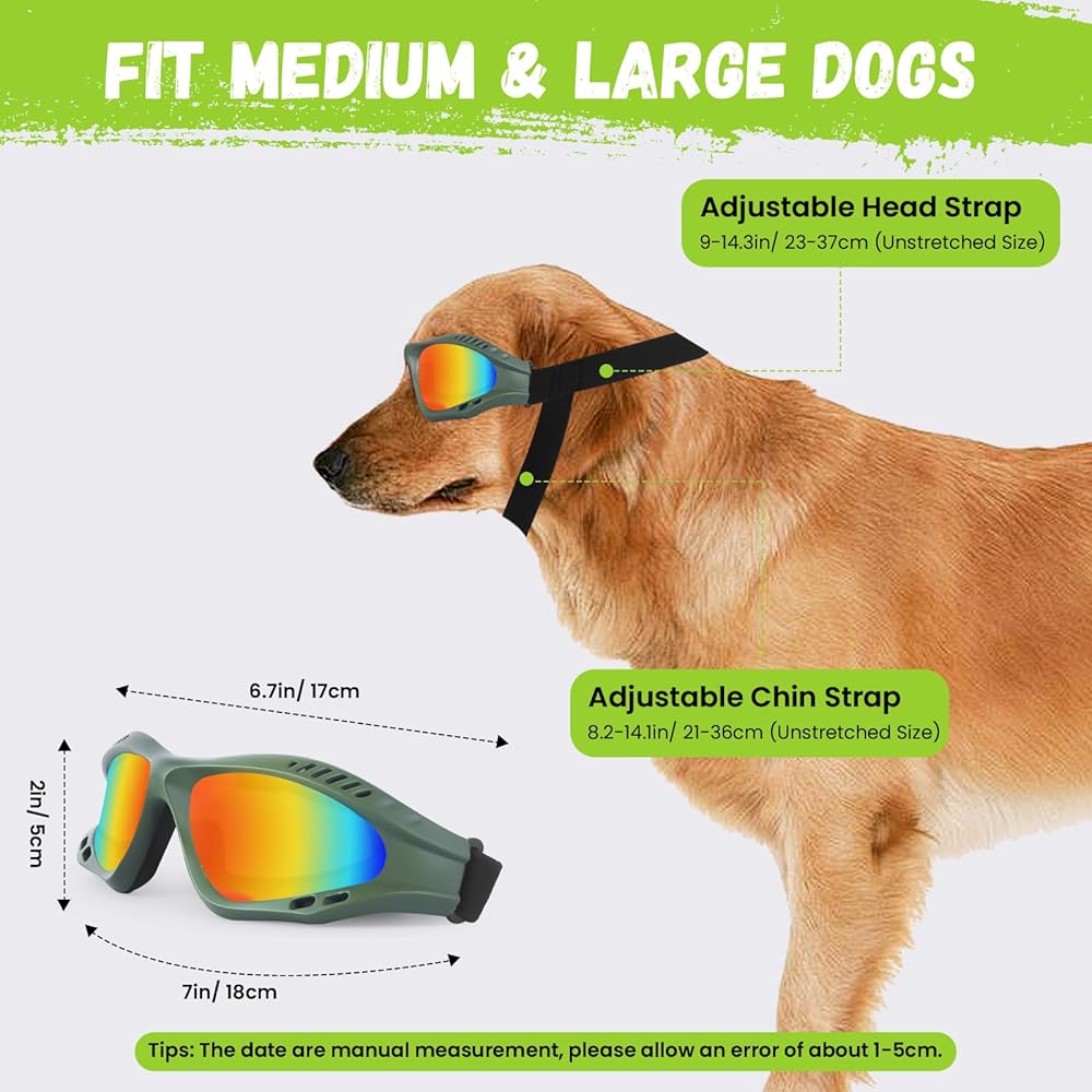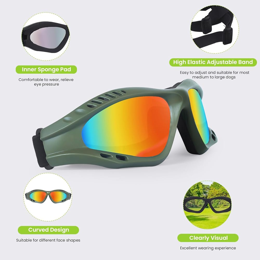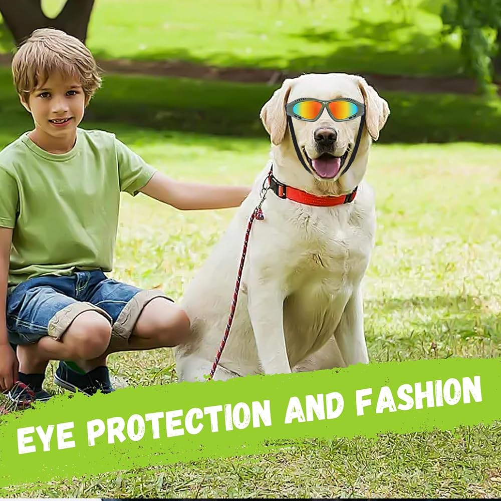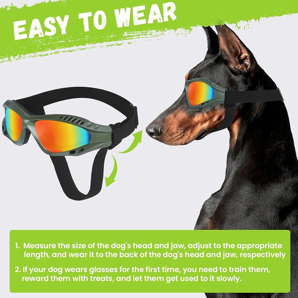【أشرطة مرنة】: الأشرطة المرنة القابلة للتعديل يمكن أن تتكيف مع سلالات مختلفة من الجراء والكلاب الكبيرة، ويجب تعديل عصابة الرأس المرنة وحزام الذقن وإحكامهما لجعل نظارات الكلاب تناسب الوجه. لا تقلق أبدًا بشأن السقوط بسهولة.