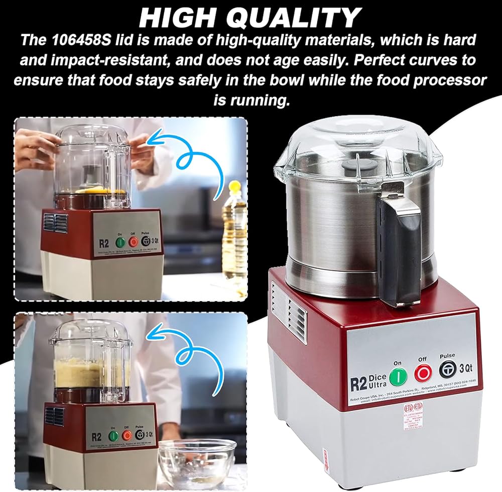 106458S cutter bowl lid for robot coupe R100B, R100BCLR, R101B, R2, R2B, R2U, R2 DICE, R2 Ultra, R2N commercial cutter mixer.
