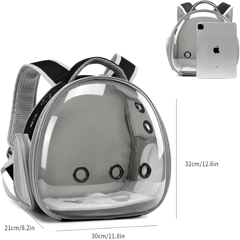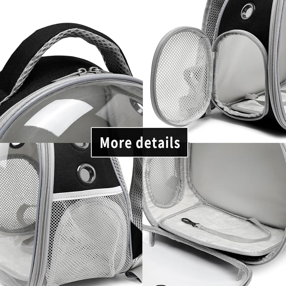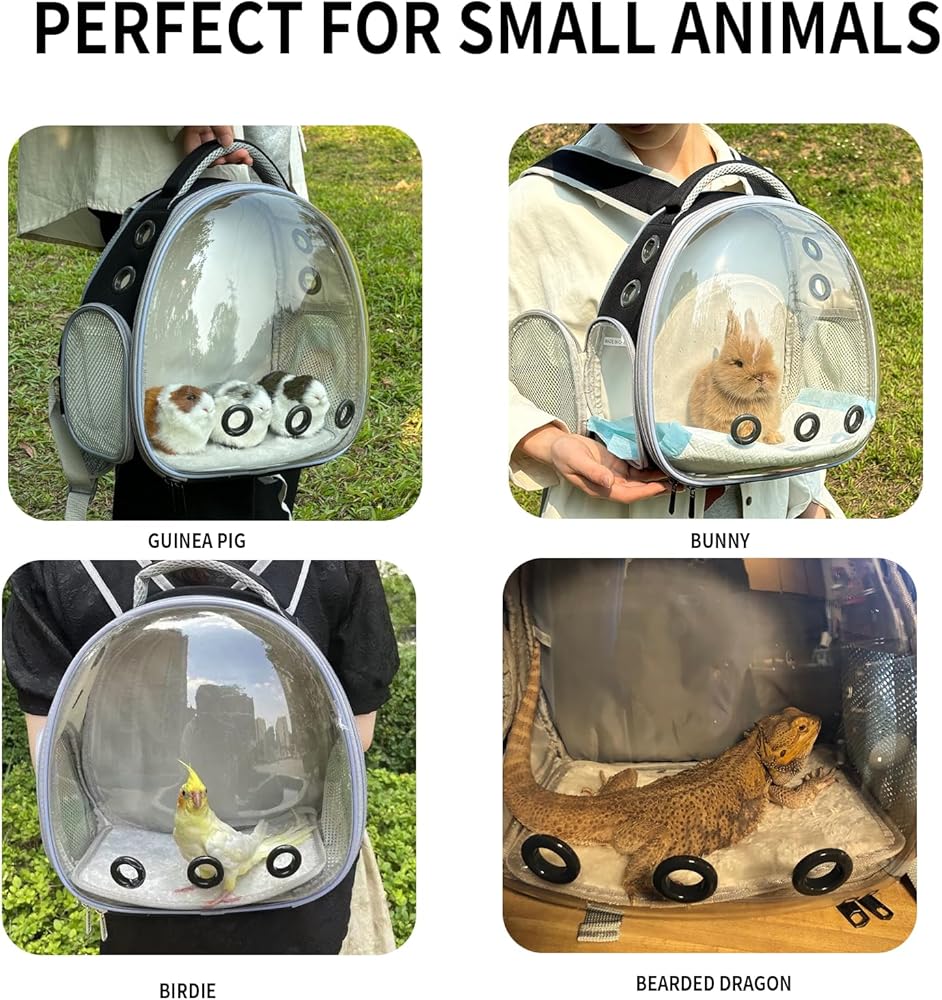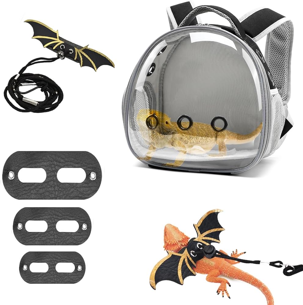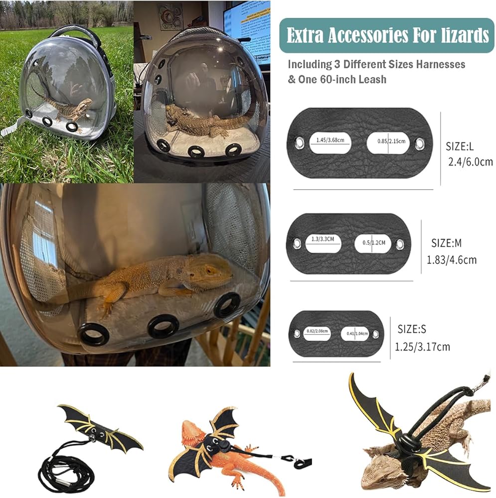 Vented and Breathable: Crafted from breathable materials, the bearded dragon portable carrier backpack includes anti-scratch mesh side windows and pockets. With five vents around the bubble carrier, it ensures sufficient airflow, allowing your lizard to breathe comfortably inside.