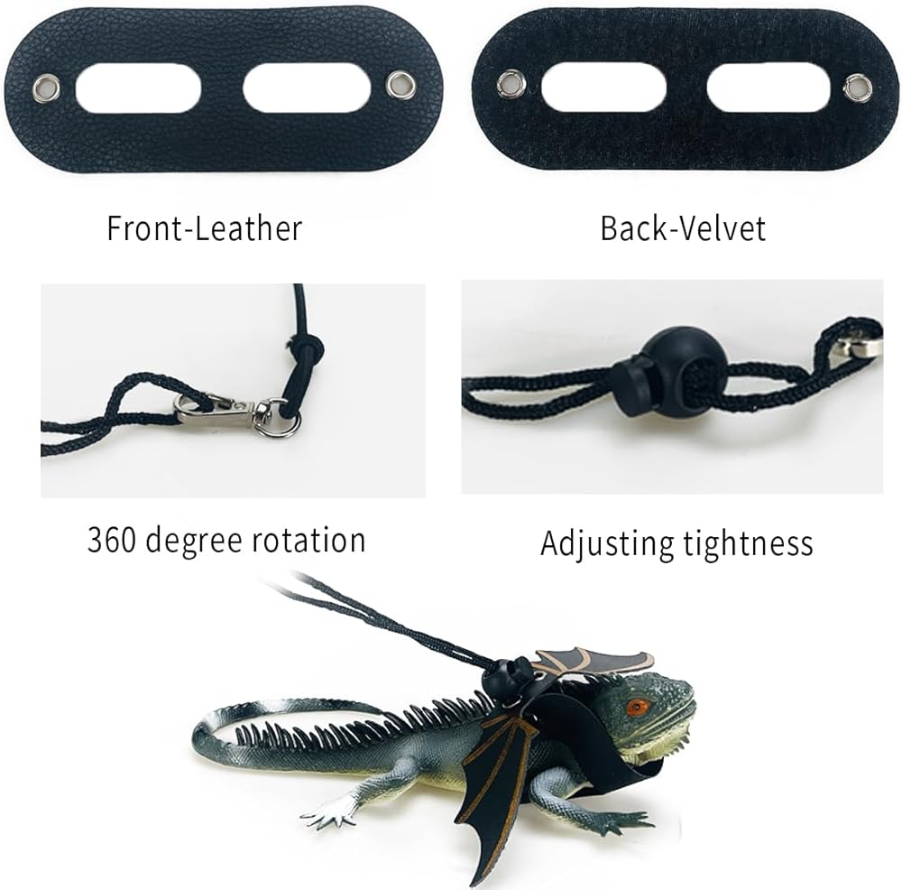 Adjustable Harness for Growth: This bearded dragon harness comes in three different sizes to accommodate your reptile's growth from juvenile to adult, ensuring long-lasting use. The easy on-and-off design allows for quick adjustments. The 60-inch rope has a secure knot to prevent slipping through the vent holes. The soft backside of the harness provides a comfortable and warm touch, suitable for lizards and chameleons.