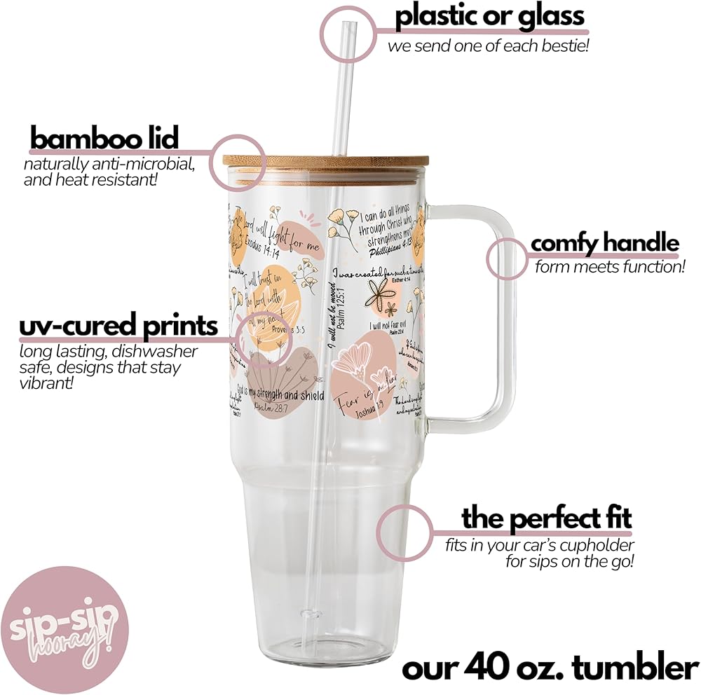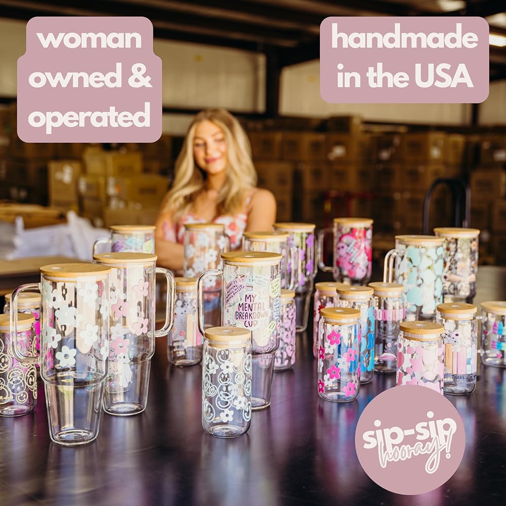Looking for thoughtful, unique and personalized gifts? Sip Sip Hooray's custom tumbler with lid and straw features your recipient's name and/or unique designs. It's a gift they'll always remember as coming from you, their friend or family member. Coffee cups are often very personal, and many people love to use the same cup or coffee tumbler day after day. Our borosilicate glass Tumblers with lid and straw are made to withstand everyday use. Made from borosilicate glass, Sip Sip Hooray's personalized cups are clear, ultra sturdy, and made to withstand everyday use with iced coffee, beer and other cold drinks. You might notice these personalized glass tumblers are also shaped like a beer can glass, but also come with lids and straws!