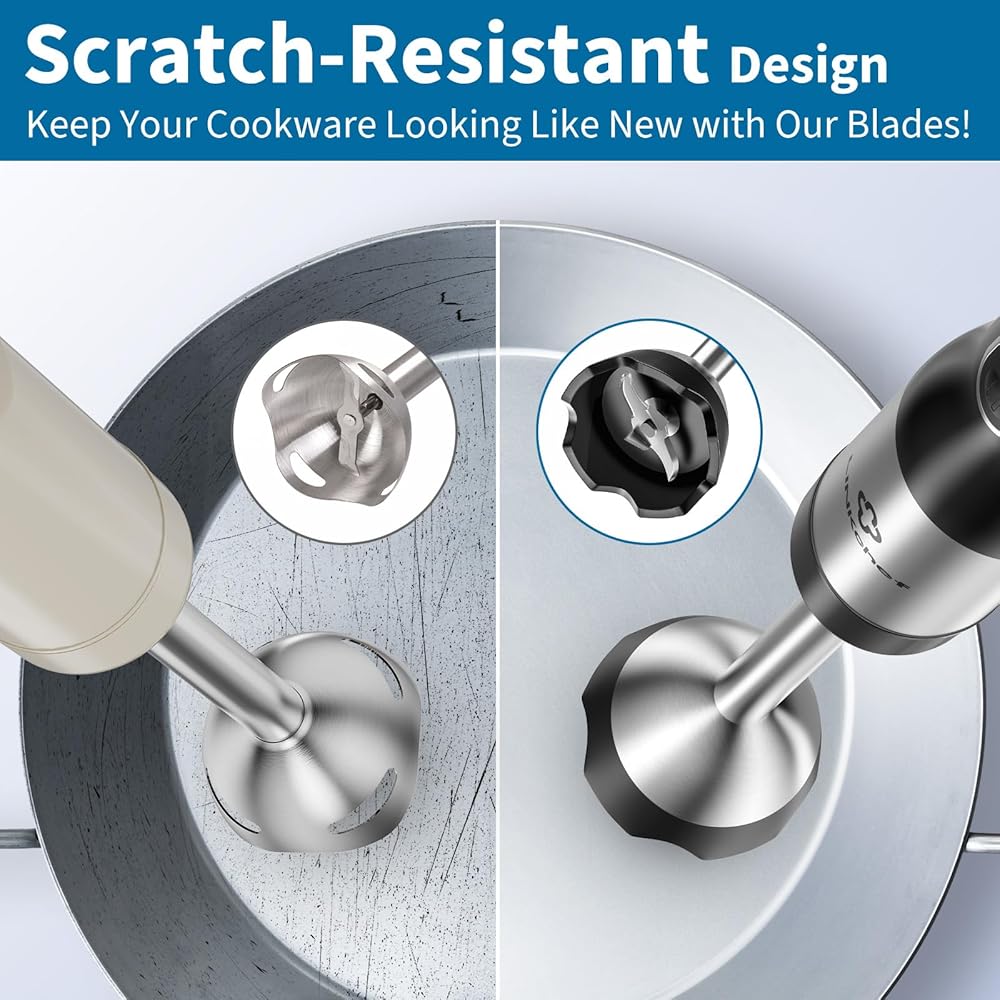 ❤️【وظيفة مضادة للخدش لأواني الطبخ غير اللاصقة】-- التصميم المضاد للخدش للخلاط الغمر المطور يحمي بشكل خاص أواني الطبخ غير اللاصقة. يسمح لك باختيار أي أوعية ومقالي، ولم تعد تقلق بشأن خدش القدور والمقالي المفضلة لديك. كما يمنع الغطاء الواقي الفريد من نوعه على شكل زهرة التوليب تناثر السوائل ويضمن مطبخًا نظيفًا. يعتبر هذا الخلاط الغاطس المحمول مثاليًا للعائلات أو الأمهات أو محبي الطعام.