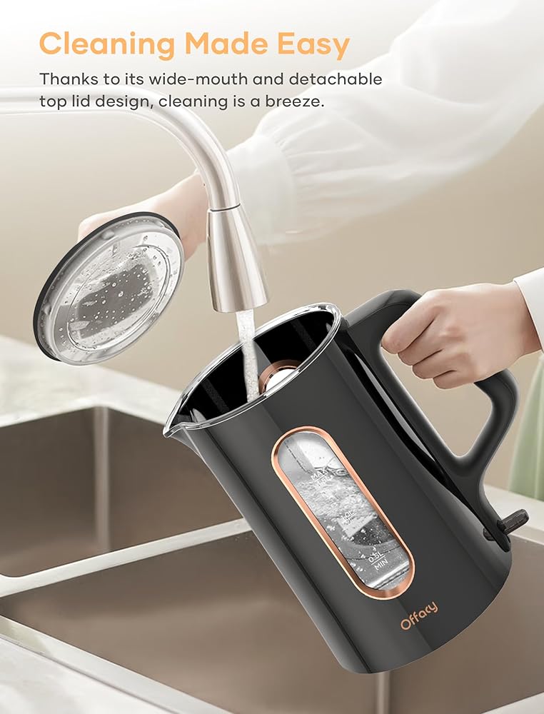 سهلة التنظيف: مصممة بغطاء قابل للإزالة لمنع تناثر الماء الساخن أثناء الاستخدام، كما تسمح الغلاية الخاصة بنا بالتنظيف دون عناء. يمكن فتح الغطاء بالكامل يدويًا، مما يسهل عملية إعادة التعبئة والتنظيف الشامل للحصول على نظافة مثالية.