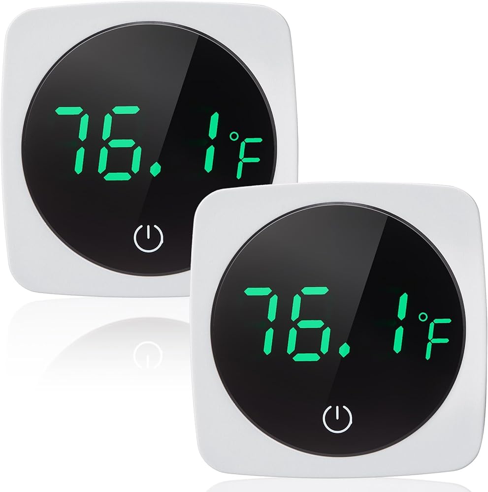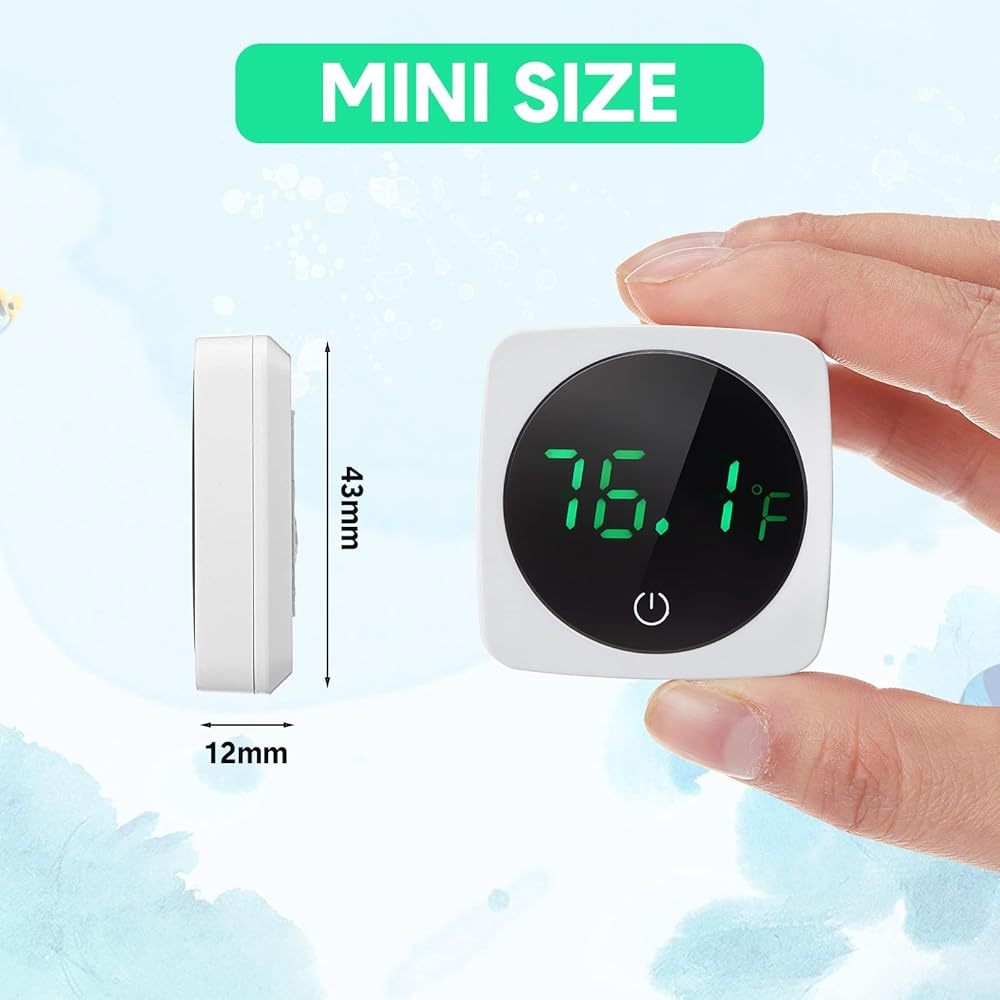 Enough to Use: there are 2 pieces of digital aquarium thermometers in the package, to meet your use and replacement; Each aquarium temperature gauge is approx. 1.69 x 1.69 x 0.47 inches/ 4.3 x 4.3 x 1.2 cm, which is small and compact, won't take up much space when it is stuck to a fish tank