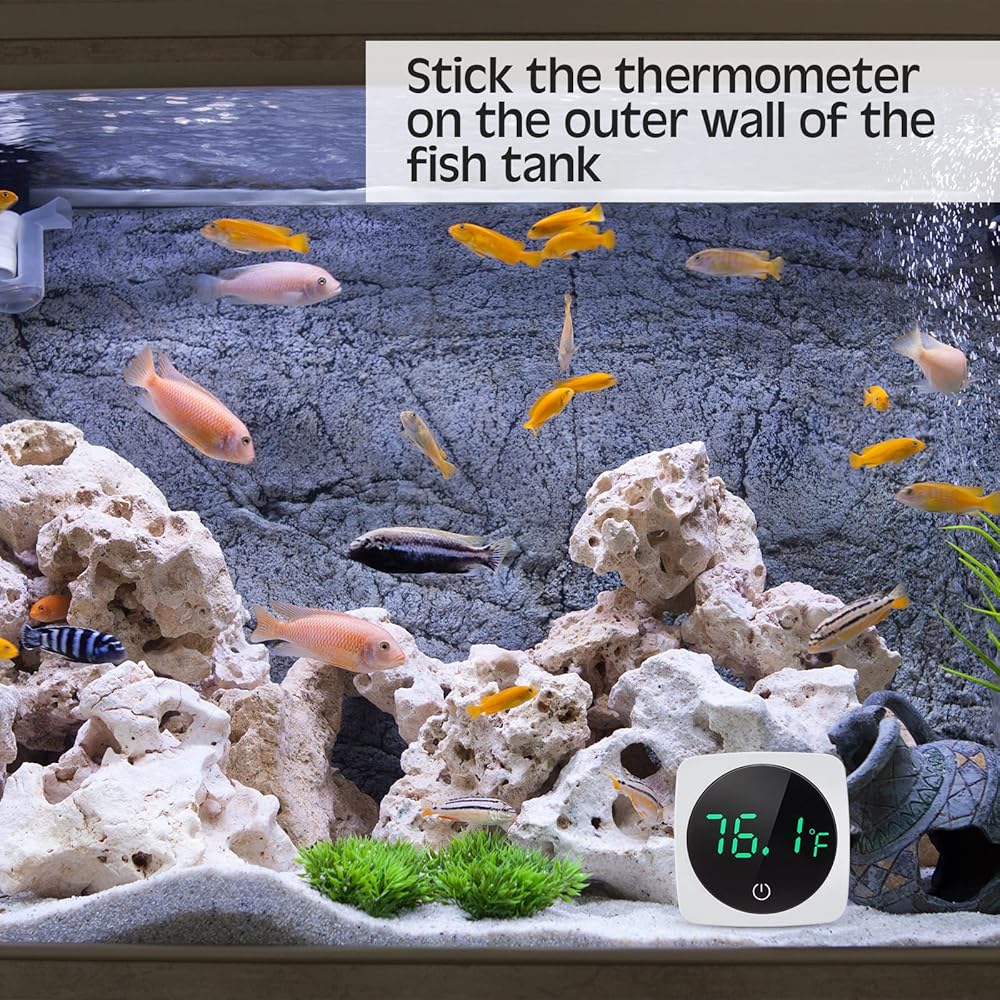 Easy to Use: the aquarium digital thermometer has a transparent double sided adhesive on the back, you just need to peel off the tape and stick on the outer wall of the fish tank; Our thermometer adopts a highly accurate sensor, so it can accurately measure the temperature without placing it in the water, no messy wires, which can protect your fish from electrocution or accidental ingestion