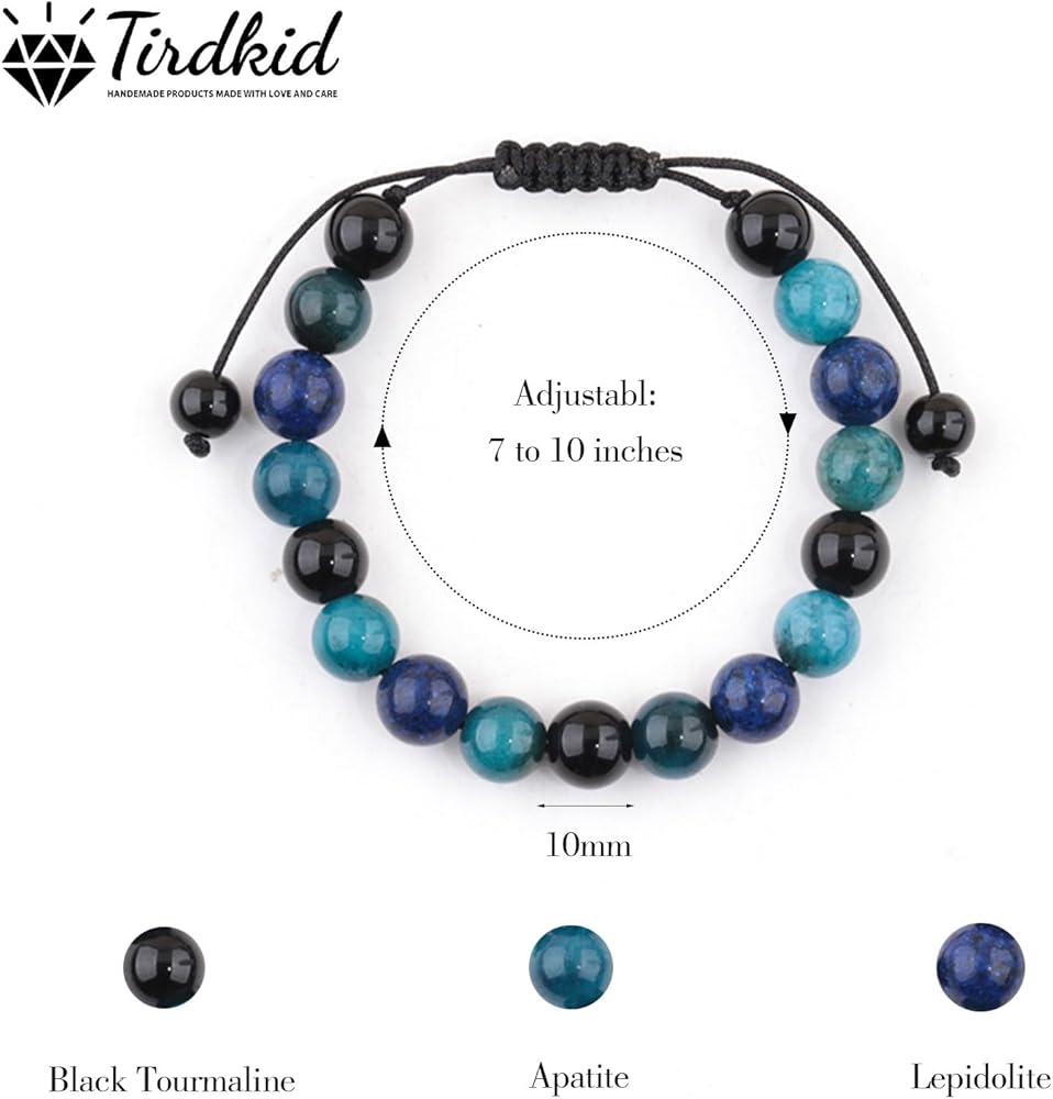 【سوار الحماية】: يتناغم التورمالين الأسود والأباتيت والليبيدوليت للمساعدة في التخلص من القلق والتوتر، وتعزيز بيئة للشفاء والازدهار مع توفير حضور مهدئ.