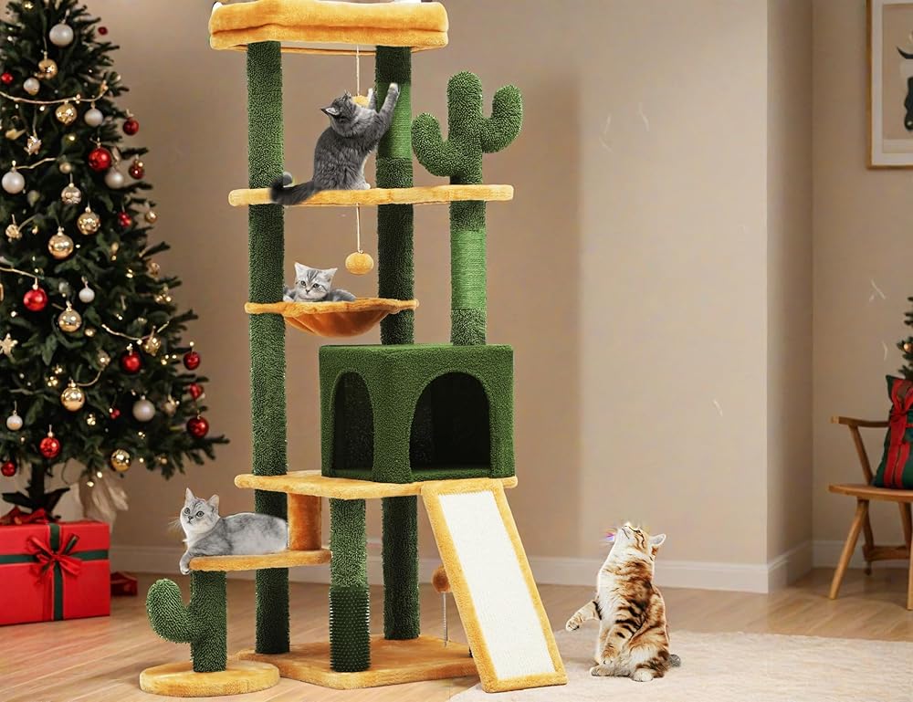 【متعة متعددة المستويات】يبلغ طول شجرة القطط الصبار YITAHOME 60 بوصة ويمكنها استيعاب العديد من القطط التي تلعب أو تستريح في نفس الوقت. مع مساحة واسعة للأنشطة، يمكن لقططك الصغيرة والقطط البالغة إطلاق العنان لغرائزها الطبيعية في الخدش والتسلق واللعب وممارسة الرياضة والنوم والبقاء راضيًا. الحجم الإجمالي - 32 بوصة طول × 29 بوصة عرض × 60 بوصة ارتفاع، مثالي لـ 3 قطط لطيفة في مختلف الأعمار للتسلق واللعب.