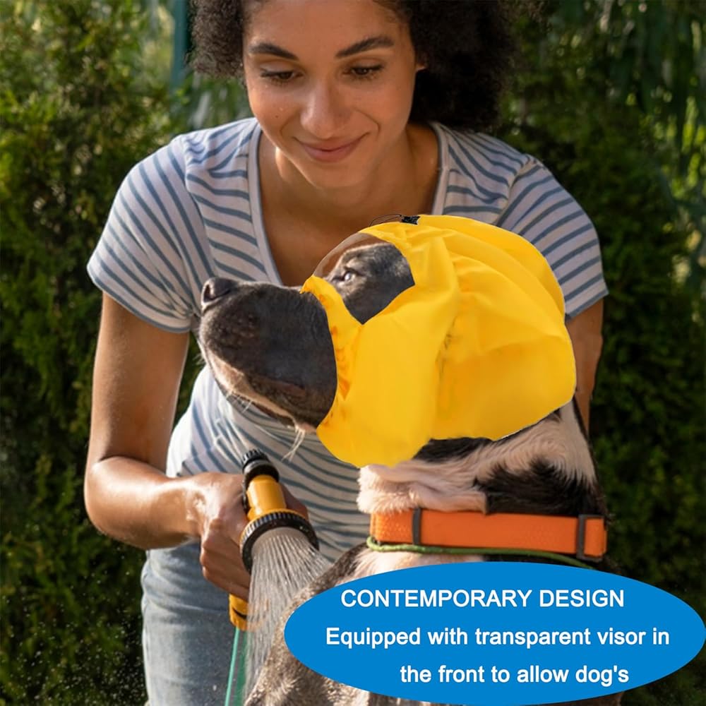 قبعة حمام الكلاب مصنوعة من قماش معطف واق من المطر المقاوم للماء لاستحمام الكلاب مما يسمح بحماية آذان وعين حيوانك الأليف من الماء أثناء الاستحمام.